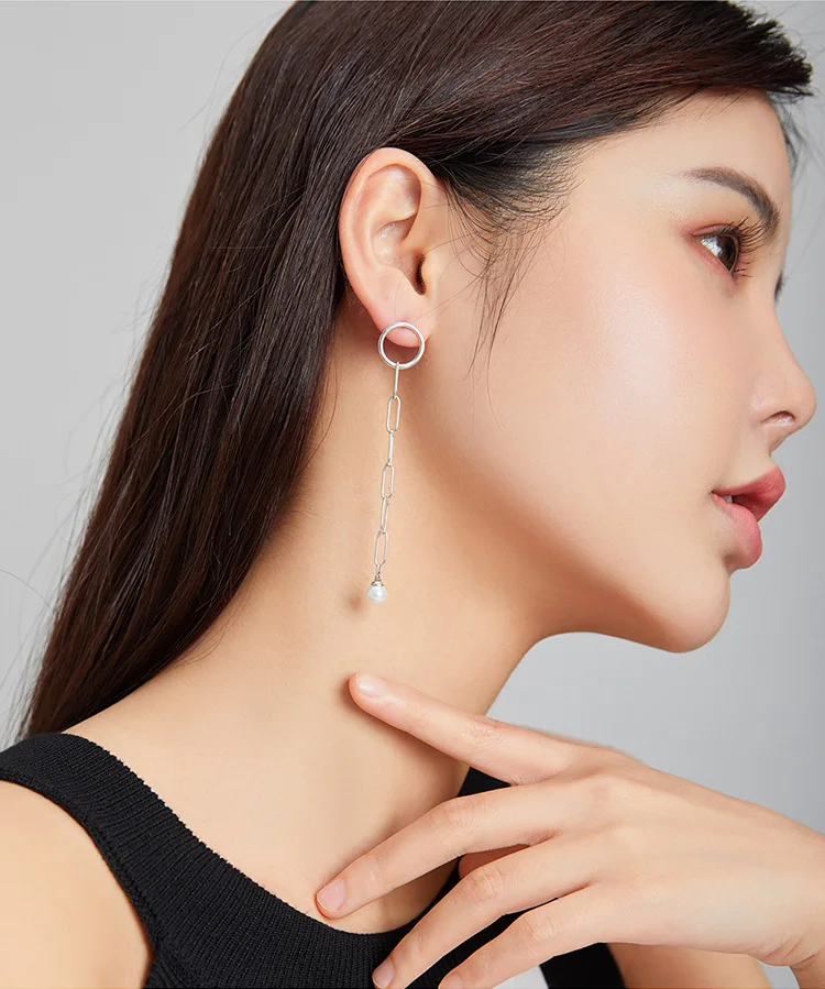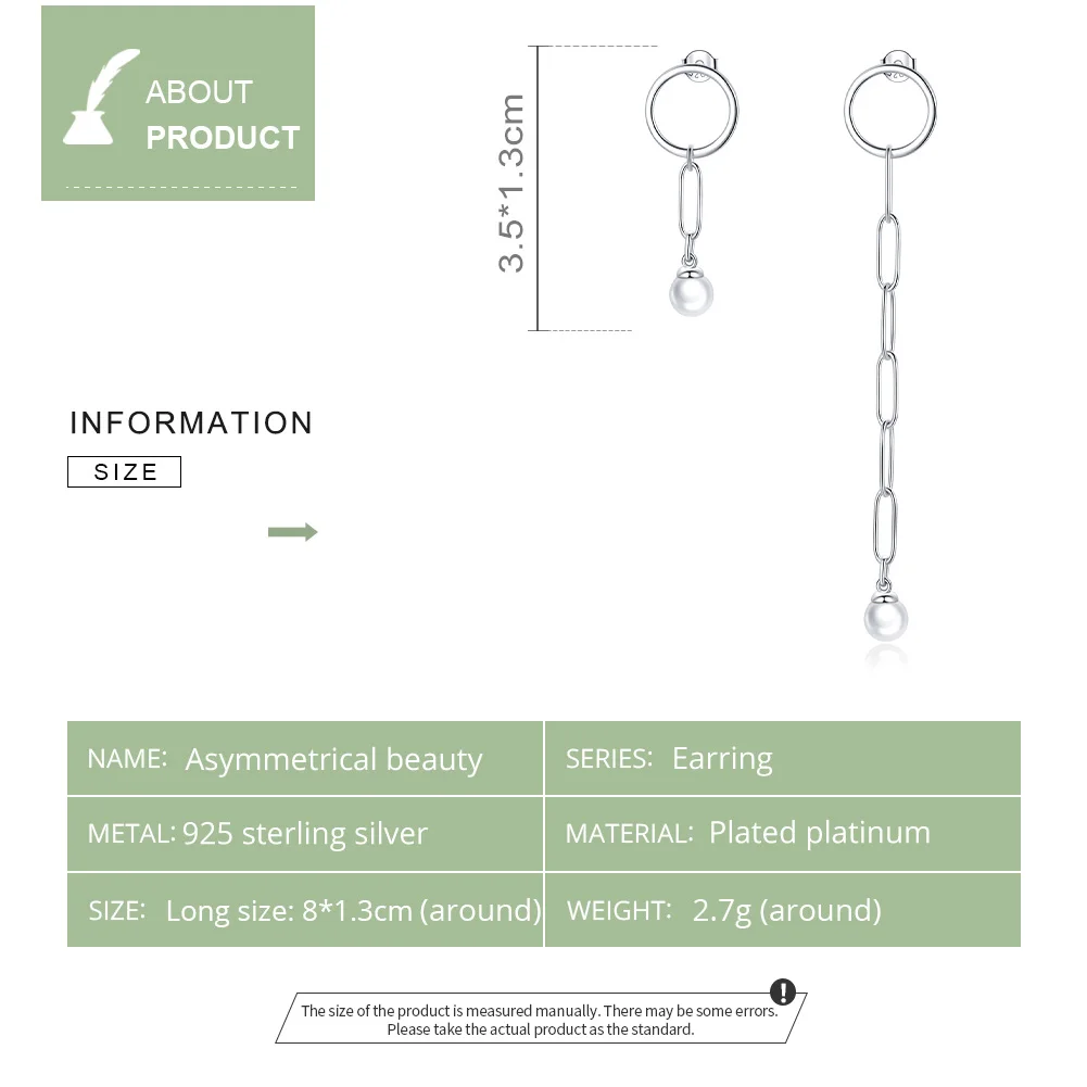 Размер: длинный размер: 8*1,3 см, короткий размер: 3,5*1,3 см Вес: около 2,7 г Материал: S925 + качественный жемчуг + окисленное серебро Описание: ассиметричный дизайн цепочки, ретушные линии лица, белые бусины в горошек, делают кожу более яркой.