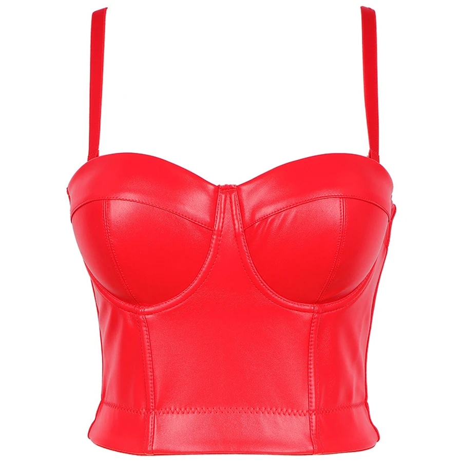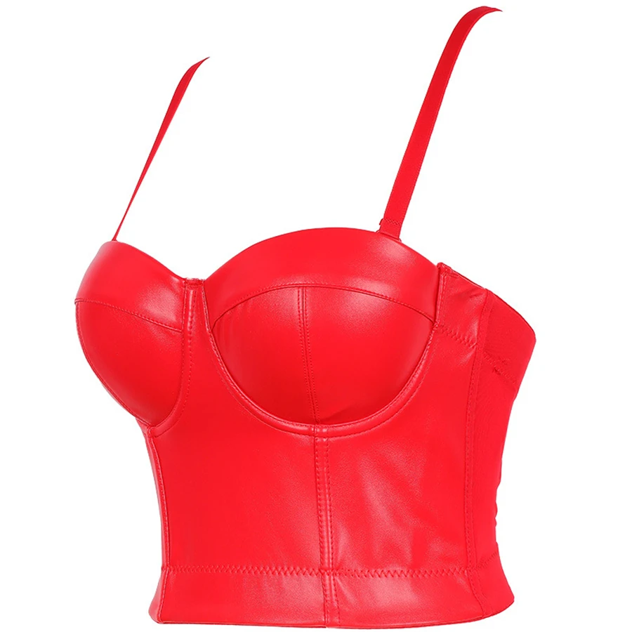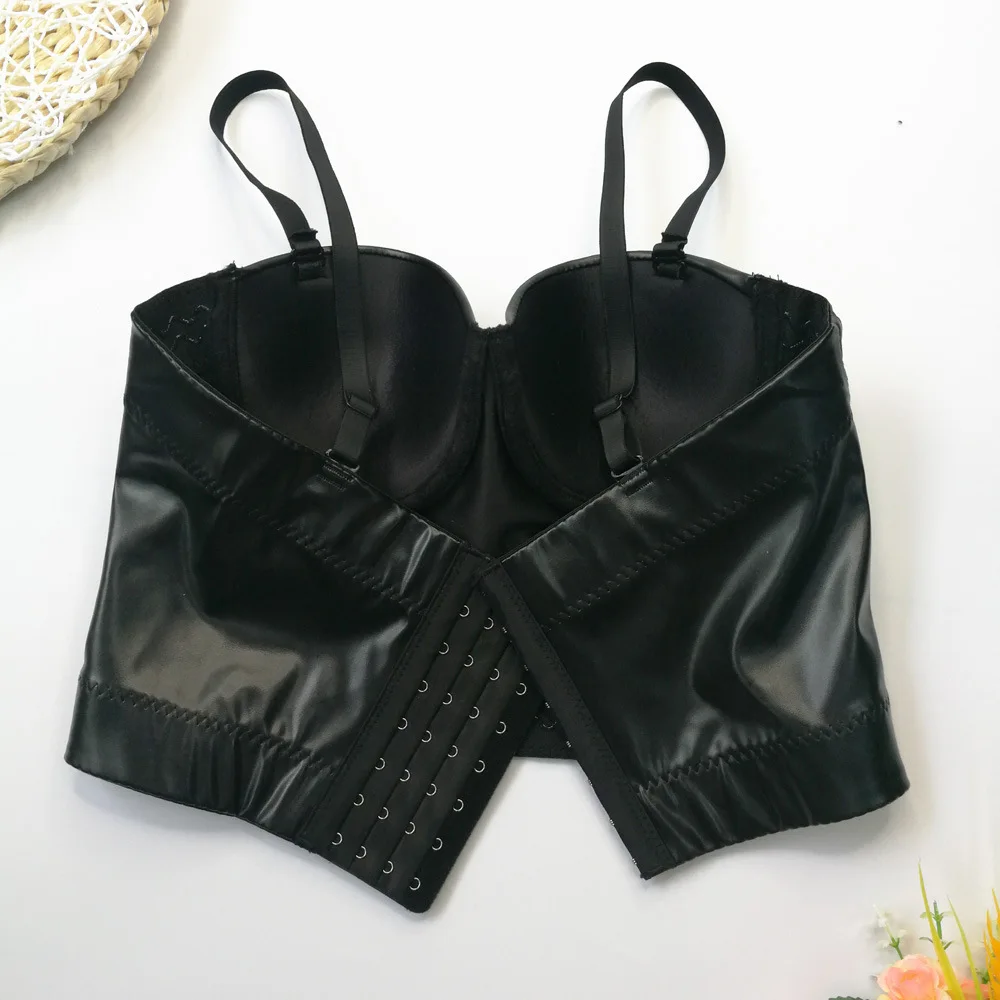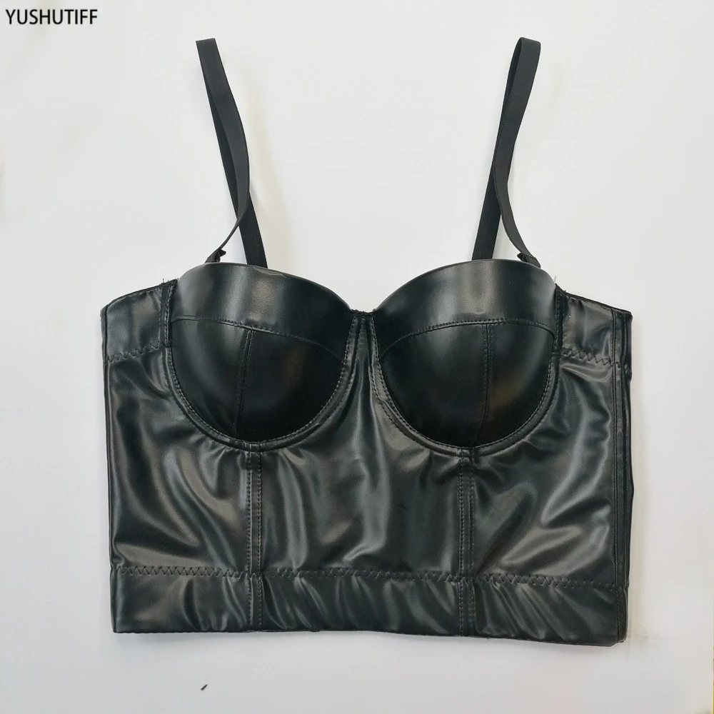 Женский топ без рукавов 2021, короткие сексуальные черные майки, топы со встроенным бюстгальтером, Бралетт пуш-ап из искусственной кожи, для ночного клуба и представлений