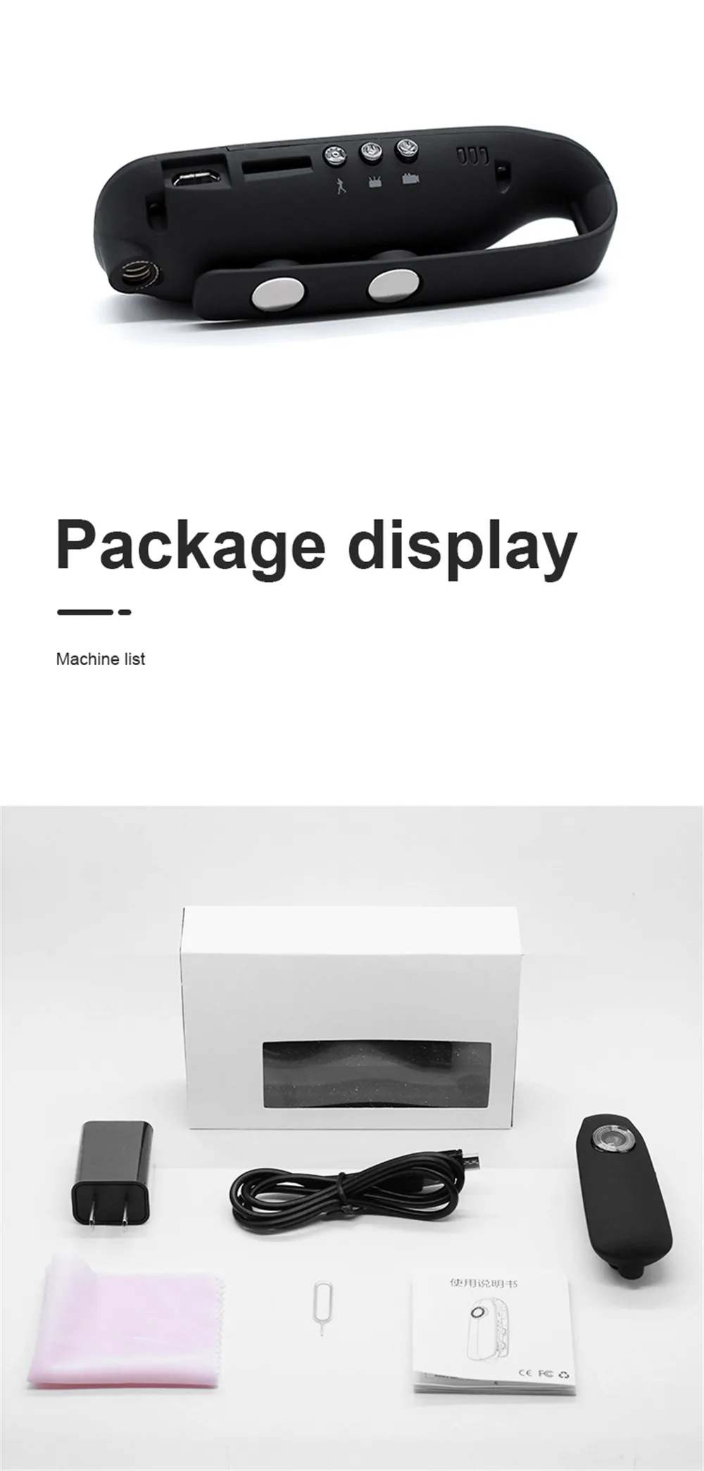 Посылка:1. 1 мини-камера2. 1x USB зарядный кабель и адаптер3. 1 салфетка для протирания