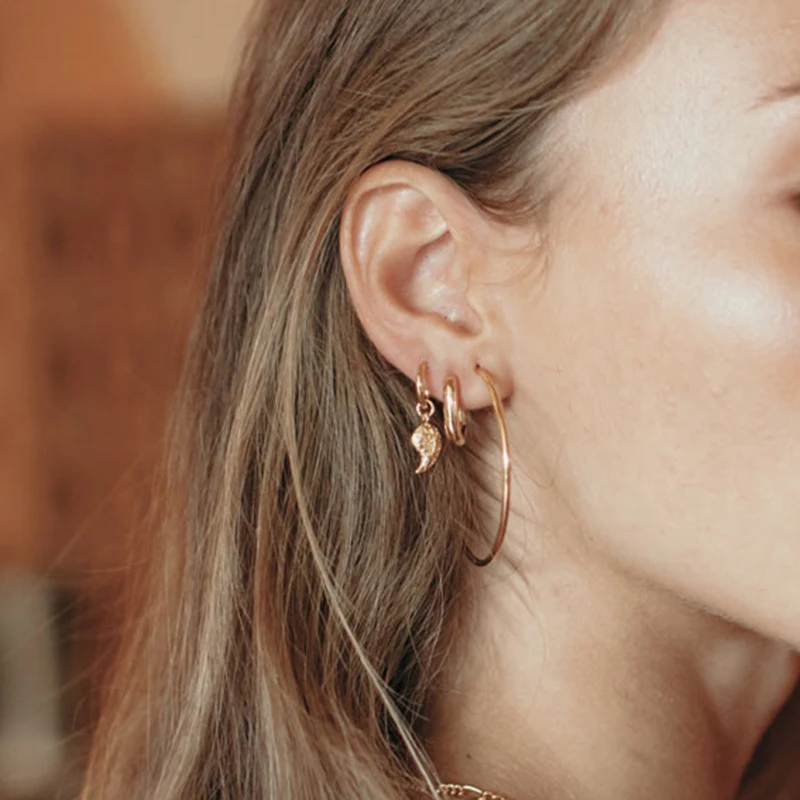 Серьги-кольца женские из серебра 925 пробы, подвеска Звезда Луна