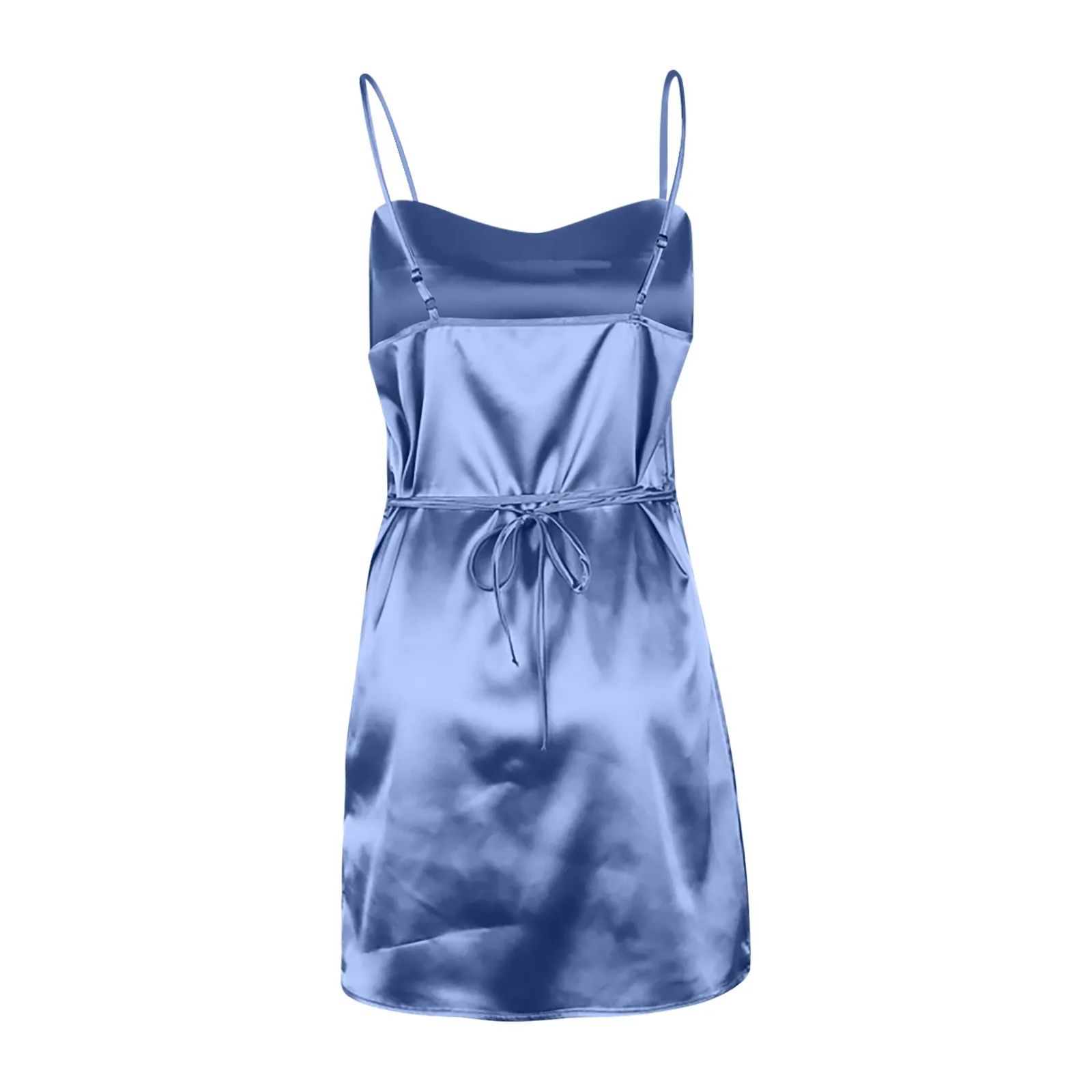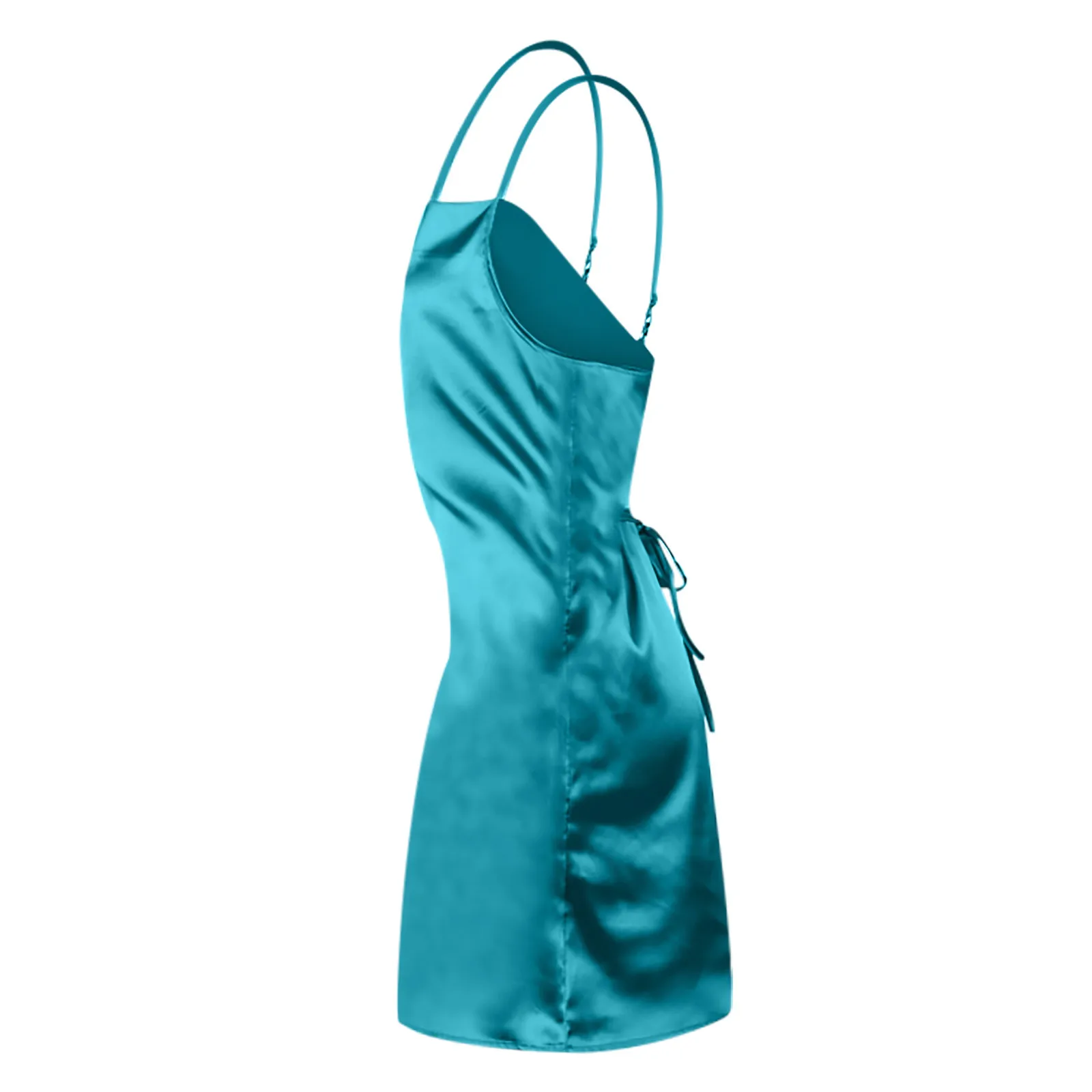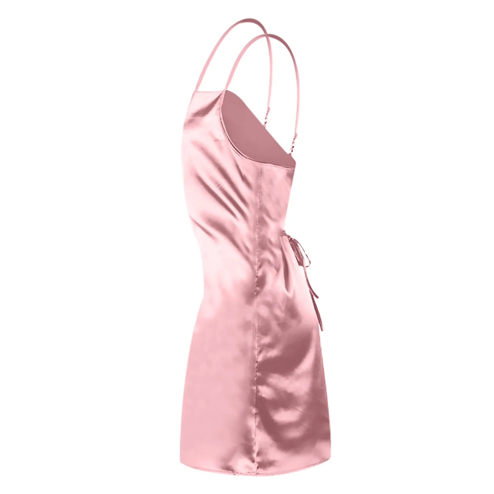 Спагетти ремень Для женщин, v-образный вырез, однотонная Цвет без рукавов на бретелях с сексуальной открытой спиной и обтягивающее платье длиной выше колена облегающее Клубное платье Sukienka