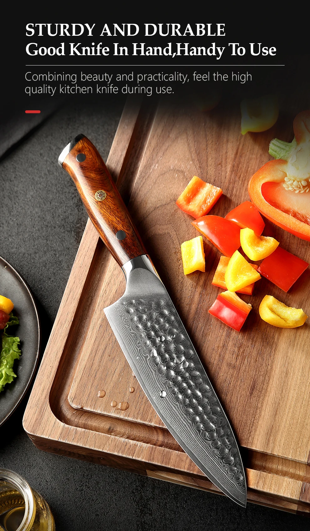 Нож шеф-повара из дамасской нержавеющей стали, 67 слоев, 5 дюймов