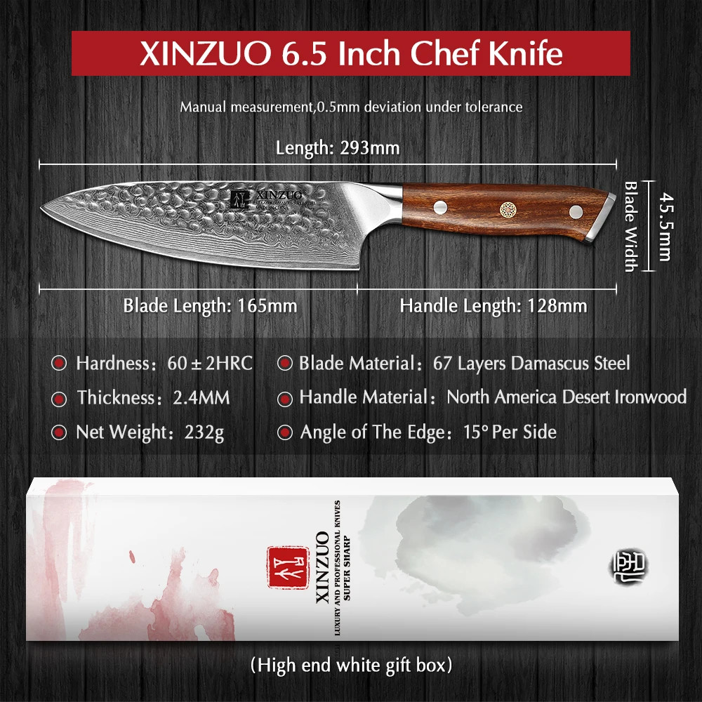 Ножи шеф-повара XINZUO 6,5 дюйма VG10, японские кухонные ножи из да...