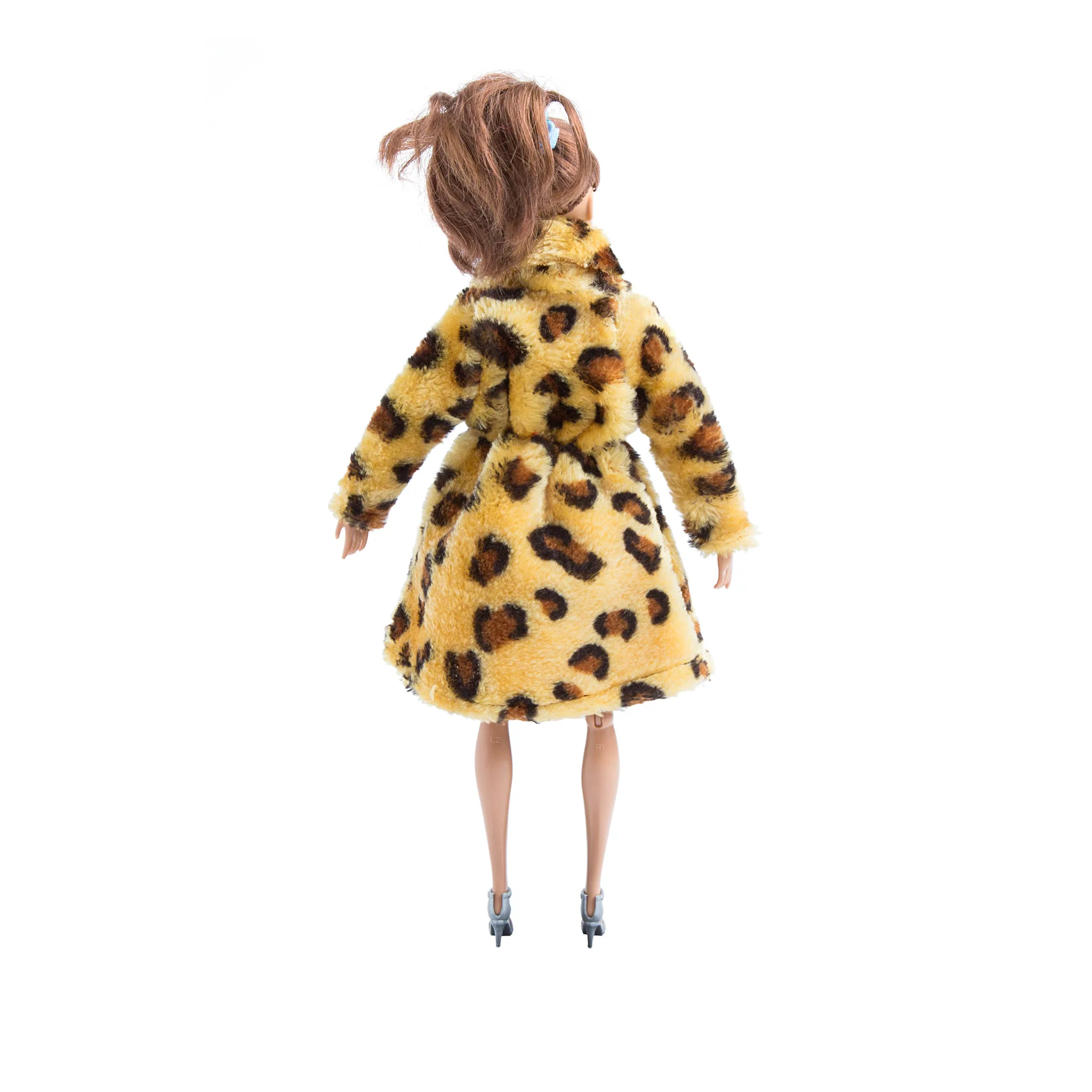Модное шерстяное пальто ручной работы с желтым леопардовым принтом для куклы Барби