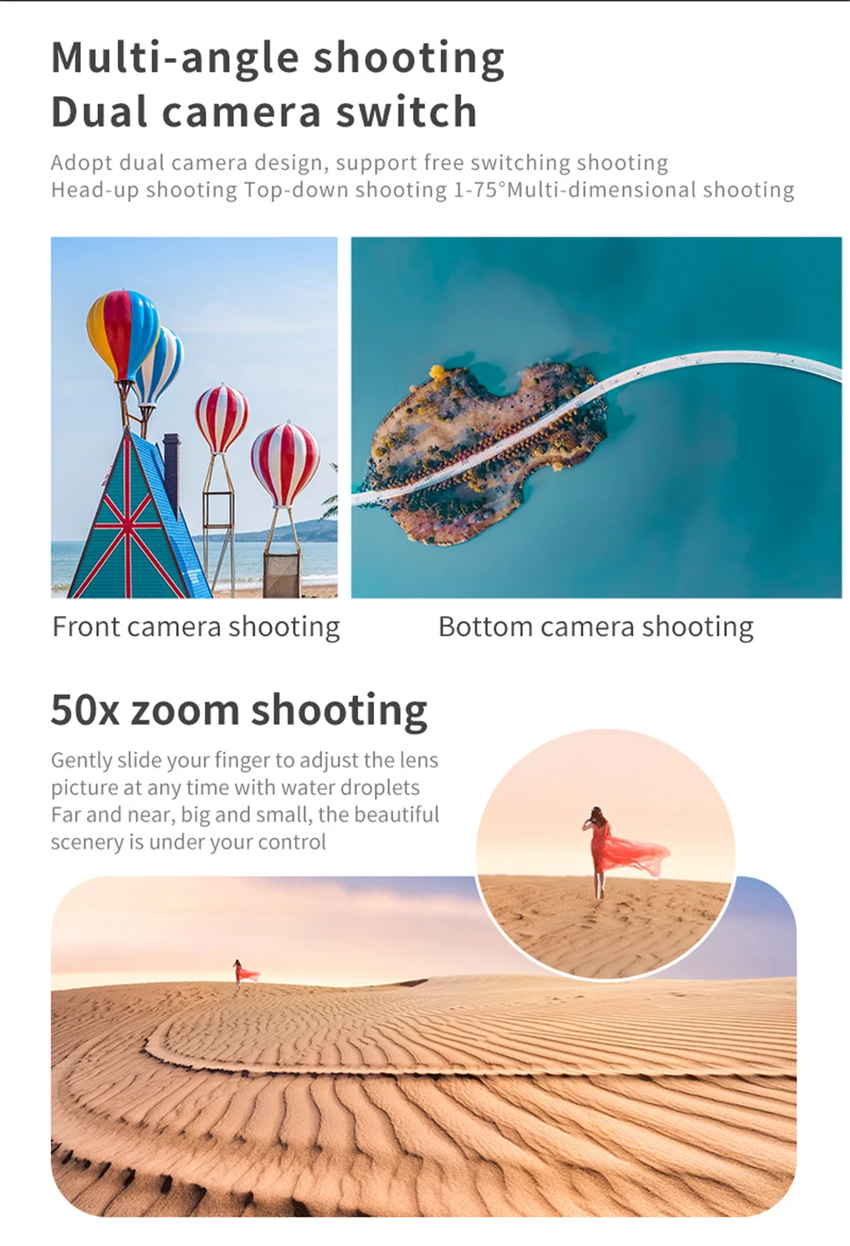 Особенности: С функцией удержания высоты обеспечивает стабильный полет. С функцией Wi-Fi можно подключать приложение, систему APK для съемки, видео, передачу в режиме реального времени через Изображение камеры телефона. С привлекательным безголовым режимом, полностью решая проблемы «потери ориентации». С функцией возврата одной кнопкой вы можете легко найти свой путь домой. Баллистический полет. Проведите траекторию полета на экране, Дрон будет летать автономно в указанном направлении. С помощью 3,7 V 2200mAh литий-ионная аккумуляторная батарея, время полета составляет до 20 минут. 4 канала, могут быть вверх, вниз, вперед, назад, лететь слева, летать справа и кататься на 360 °. 6-a-xis гироскоп, полет более стабильный и простой в управлении. Четырехроторный фюзеляж изготовлен из высокопрочного и инженерно-стойкого пластика, который является легким и прочным. Описание: Номер товара. : K2 Характеристики продукта (см): Расширение: 24,5*23*7 см/фолд: 15*16*7 см Основной Материал: АБС-пластик Цвет изделия: черный Посылка товара вес: 547 г (аккумулятор: 46 г) Взлет Airframe Вес: 173 г Сумка для хранения источника электропитания постоянного тока (длина * ширина * высота): 26*7,5*21 см Пульт дистанционного управления Параметры батареи: 3*1,5 V "AA" (не входит в комплект) Способ зарядки: зарядка через usb Время зарядки USB: около 120 минут Время полета: около 24 минут Среда полета: внутри/снаружи Частота: 2,4G/5G Расстояние управления (свободное взаимодействие и отсутствие окклюзии):1000 м Расстояние передачи изображения Wi-Fi (свободное взаимодействие и отсутствие окклюзии):1000 м Посылка включает в себя: 1 x K2 GPS RC Квадрокоптер Передатчик-1 шт. 1x2200mAh Lipo батарея (можно выбрать количество батареи при заказе) 1 х USB кабель для зарядки 4 x защитный чехол 2 запасных лезвия 1 отвертка Руководство по применению-1 шт. 1 х Руководство
