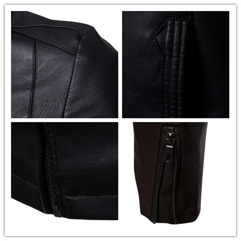 Кожаный жакет Новинка; Сезон весна-осень; Высокое качество мужские однотонные Цвет воротник-стойка с застежкой-молнией и с длинным рукавом мужская кожаная куртка