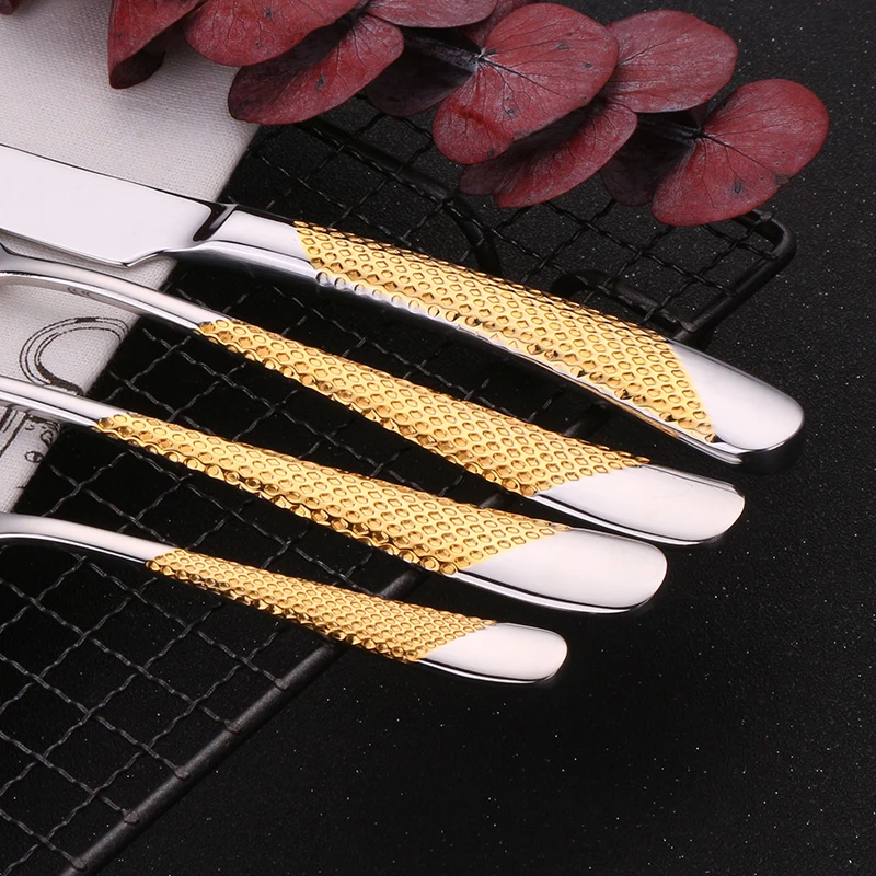 Столовые приборы из нержавеющей стали, набор золотых столовых прибо...