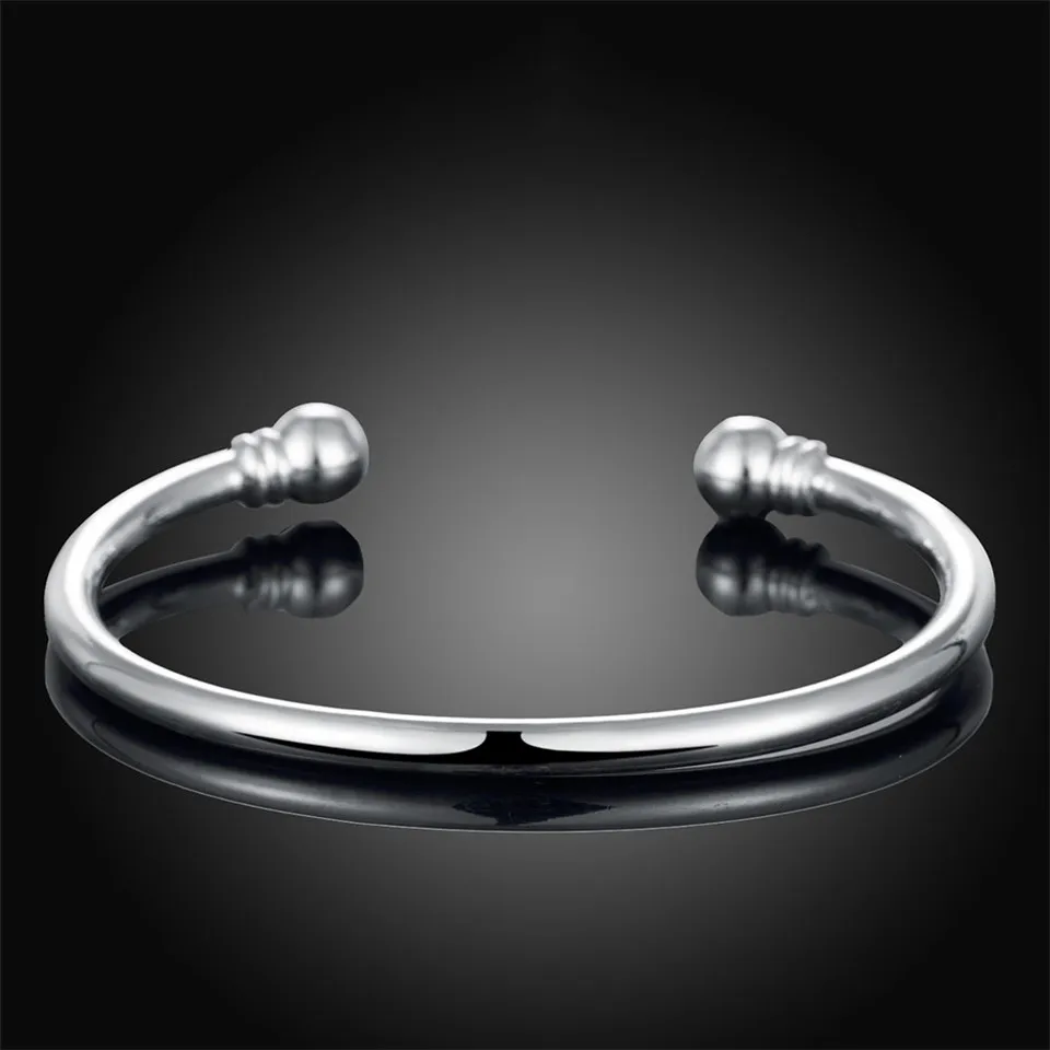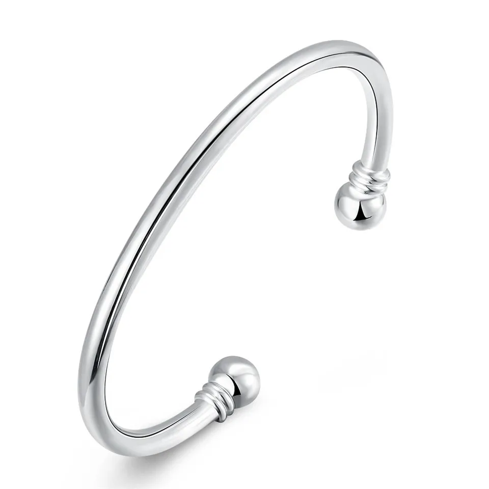 925 стерлингового серебра Гладкие бусины браслет для женщин Свадебные обручальные кольца модные очаровательные вечерние, ювелирное изделие, подарок