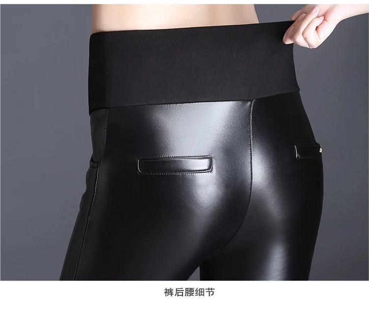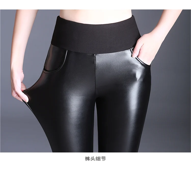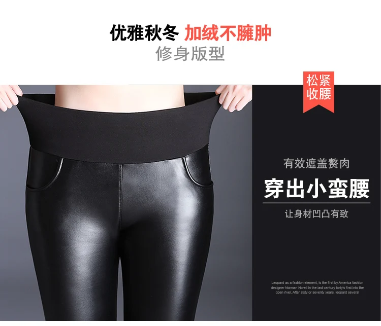 Женские осенне-зимние черные длинные брюки-карандаш из искусственной кожи эластичные облегающие бархатные брюки с высокой талией