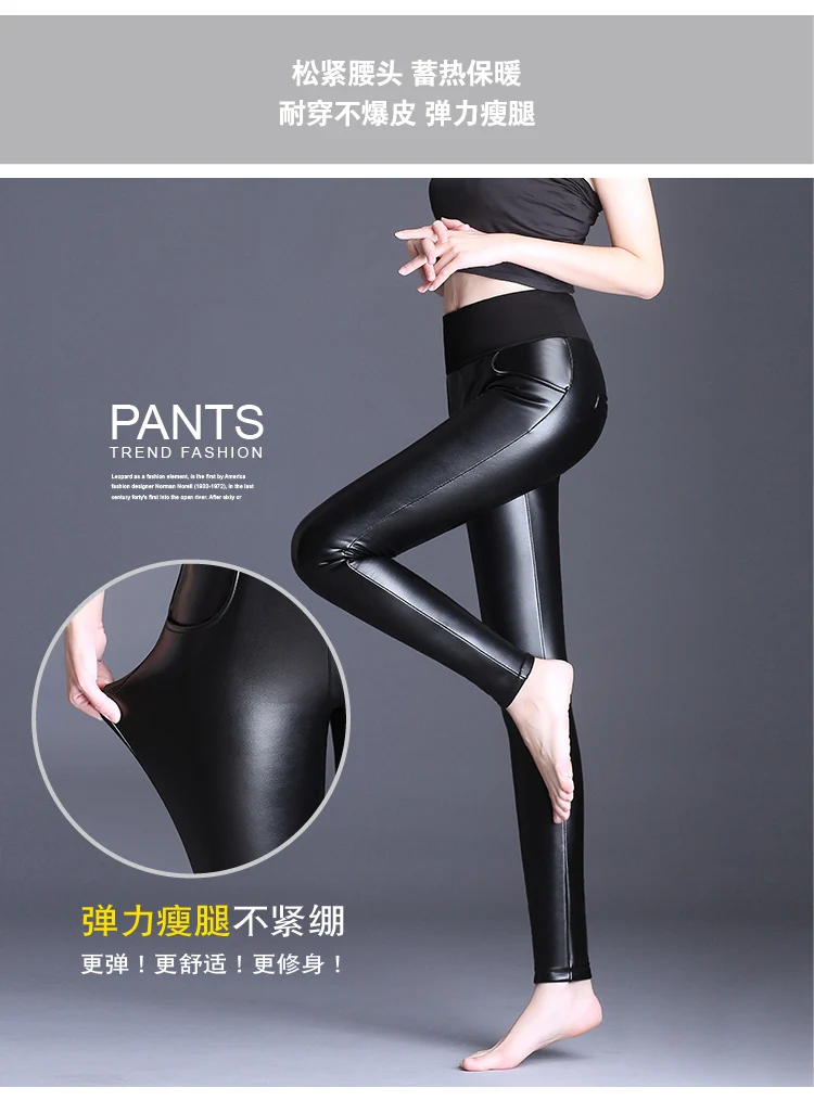 Осенне-зимние Новые облегающие кожаные брюки, леггинсы, женские эла...