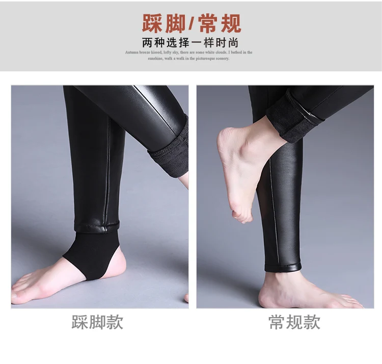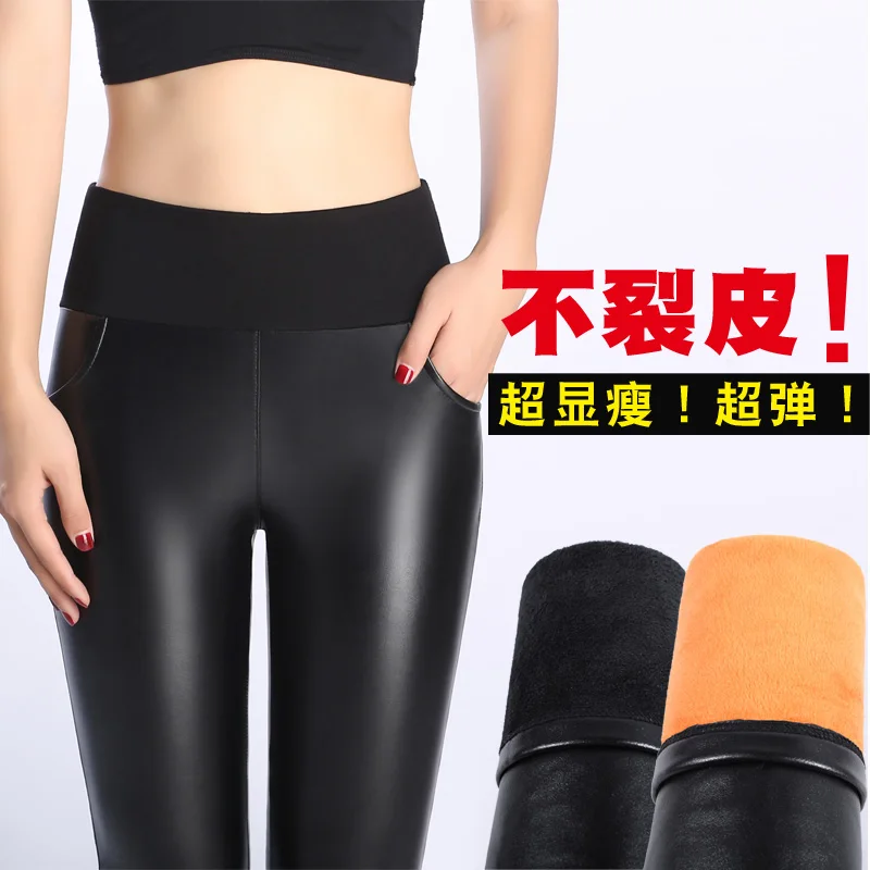 WKOUD зимние кожаные брюки с высокой талией утолщенные теплые брюки...