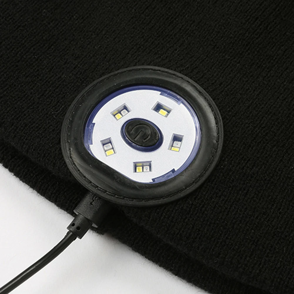 Светодиодная светящаяся музыкальная вязаная шапка бини для охоты, кемпинга, бега, перезаряжаемая зимняя теплая Беспроводная bluetooth-совместимая смарт-шапка для наушников