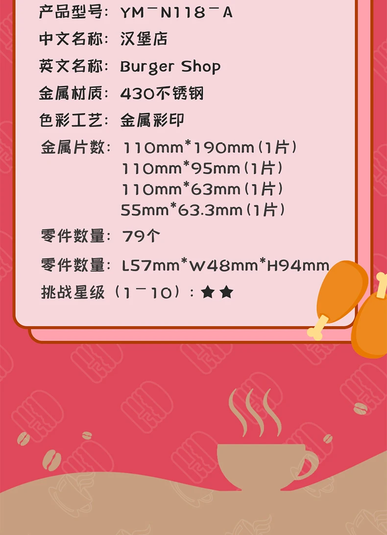 Технические характеристики:Бренд: MUНазвание:Книжный магазин3D комплекты металлических моделейМодель: YM-N118-DМатериал: нержавеющая стальОтделка Размеры: L 6 см x W 5,5 cm x H 10,5 см