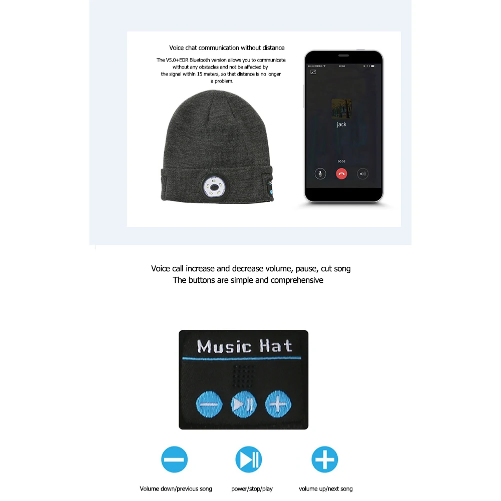 Шапка Зимняя вязаная, со светодиодсветильник, для занятий спортом и бегом, колпачок для наушников