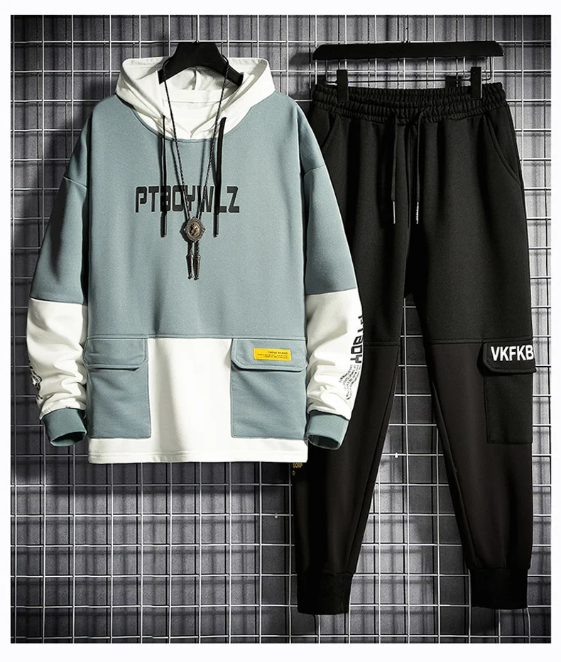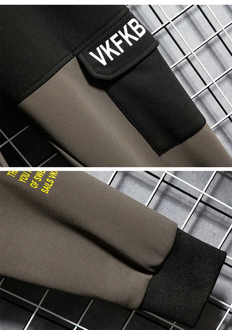 Мужской тренировочный костюм, кофта с капюшоном и штаны-карго в стиле пэчворк, уличная одежда в стиле хип-хоп, одежда для бега, 2022
