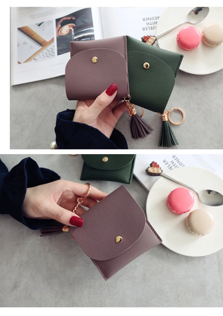 Кошелек для монет, женские кошельки, женский клатч из искусственной кожи с кисточкой и металлическим кольцом, брелок, тонкая сумка для ключей, держатели для карт, мини-сумка