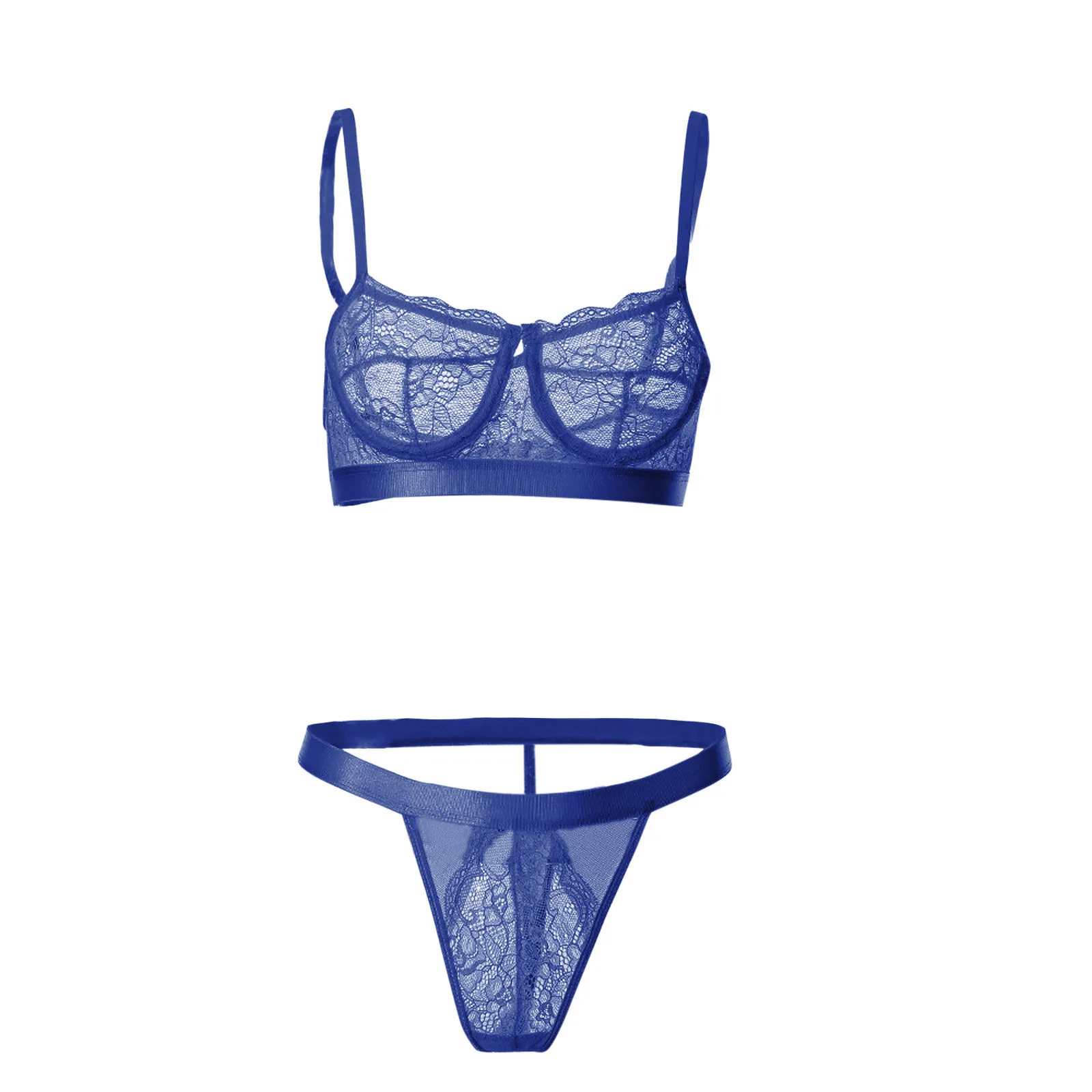 Комплект женского кружевного нижнего белья, синего цвета, с регулир...