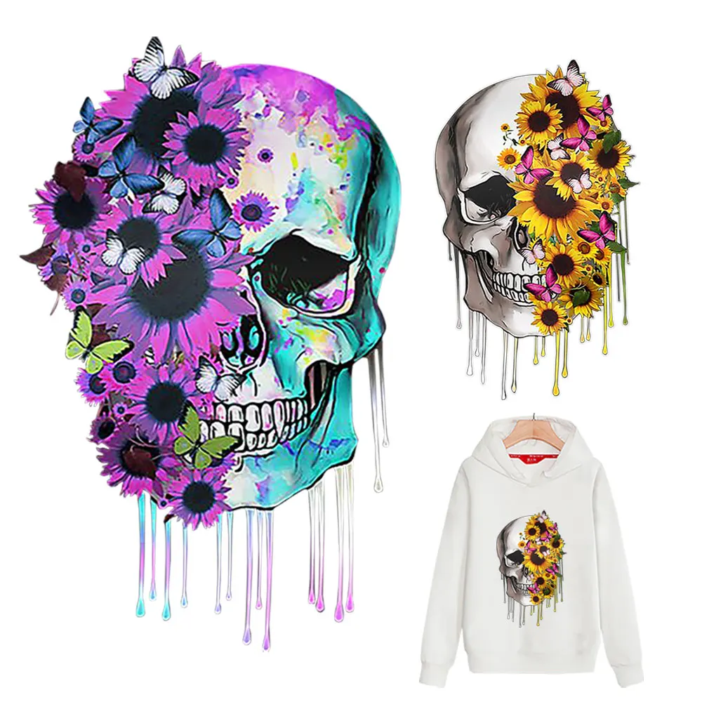 Нашивки для одежды сделай сам, термотрансферные виниловые термонаклейки для одежды, подсолнуха, черепа, термофутболки, моющиеся