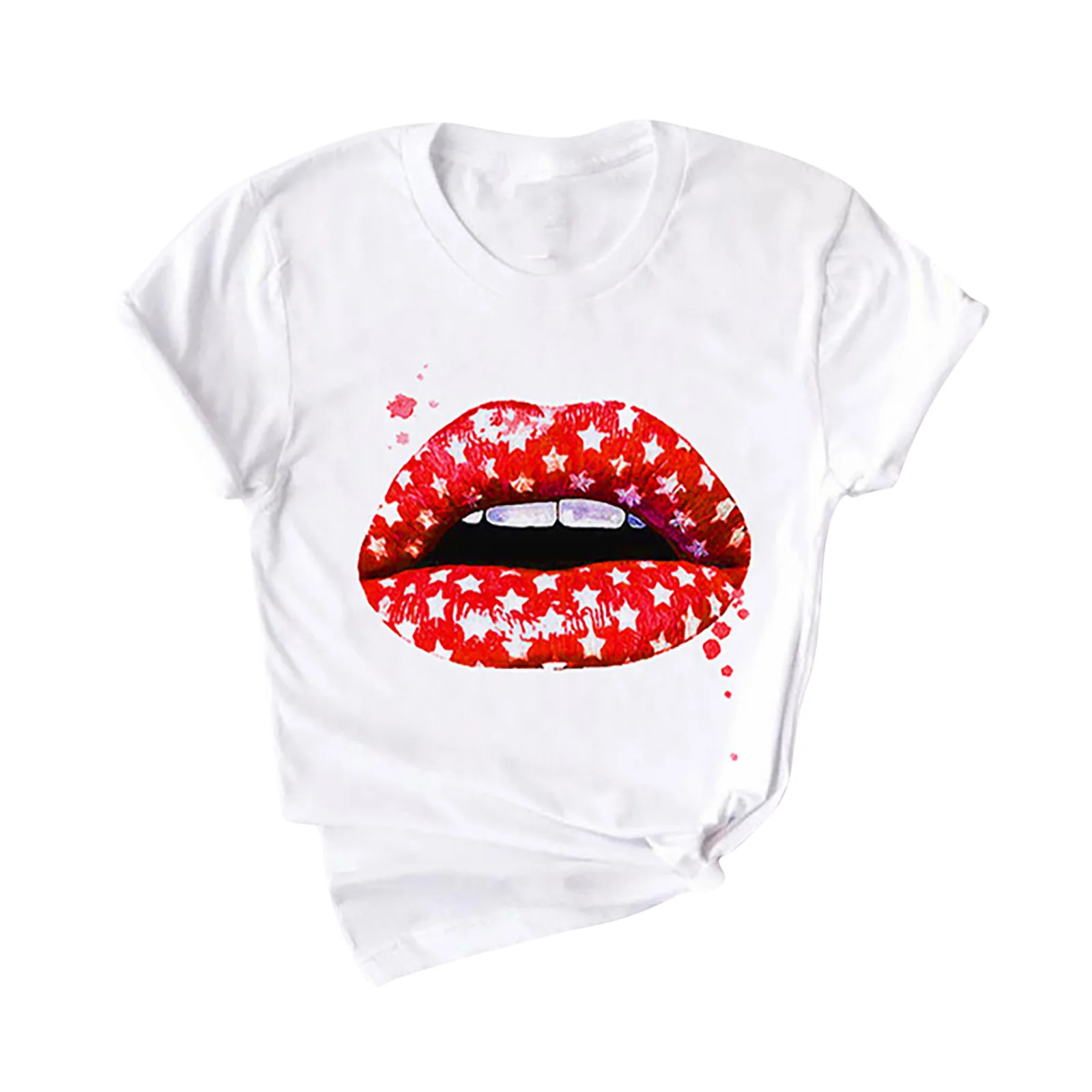 Модная женская рубашка, Женская Повседневная рубашка с круглым вырезом, топ с коротким рукавом и принтом красных губ, винтажная Женская одежда, женская одежда #30
