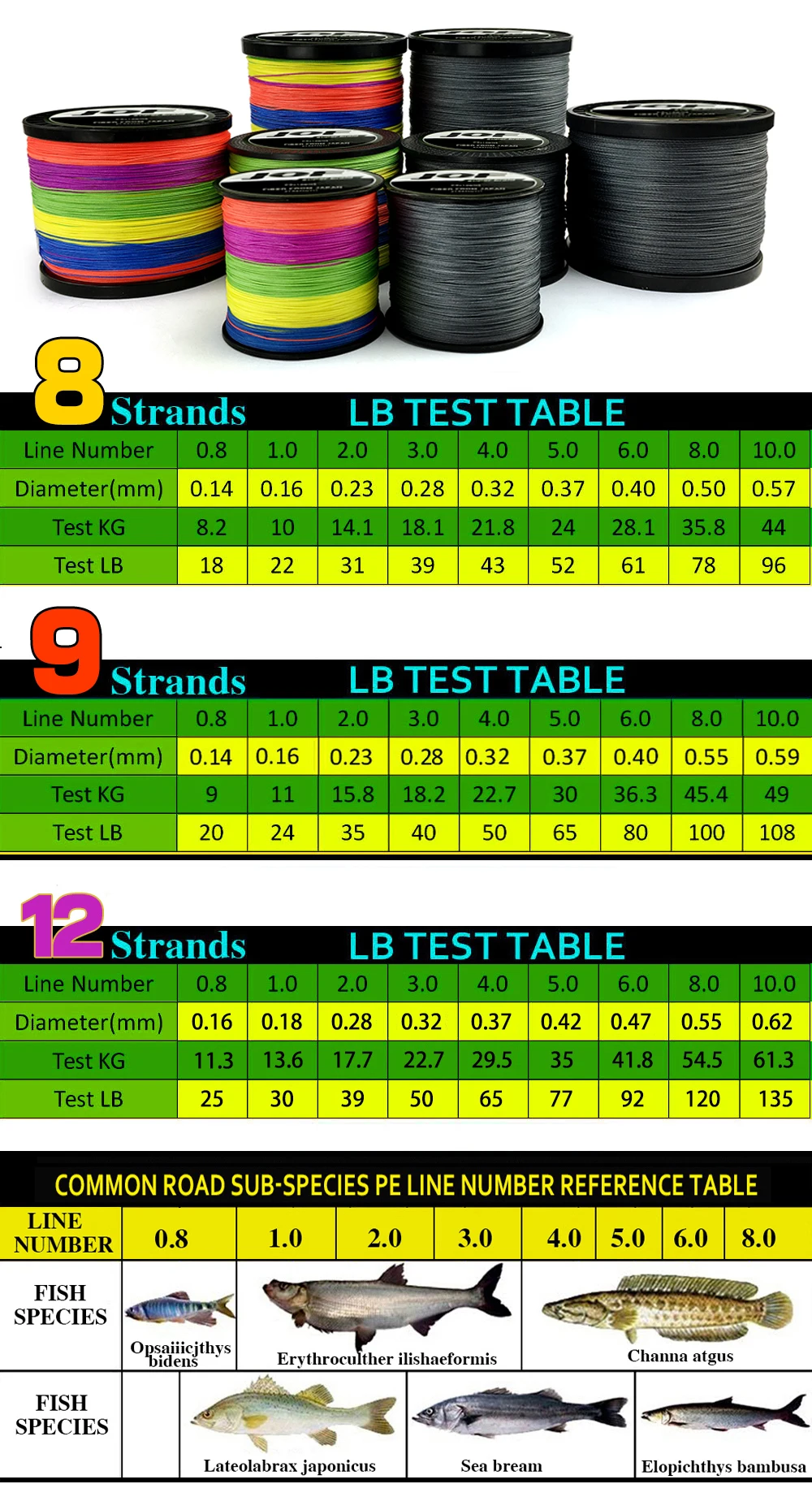Характеристики:Тип: плетеная лескаМатериал: сверхпрочные волокна PEПлетение: 12 прядей/9 прядей/8 прядейМетров: 100 м/300 мДиапазон испытаний прочности (LB):18LB-135LBДиапазон испытаний прочности (кг):9-61,3 кгДиапазон диаметра (мм): 0,16 мм-0,62 мм4 цвета: серый/многоцветный/зеленый/желтыйСтойкость к истиранию: прочный PE, японский материал, прочный и долговечныйПоглощение воды: нетПамять: очень низкаяСлой покрытия: ГладкийПодходит: соленая вода/пресная вода Посылка в комплекте1 шт. * леска