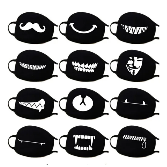 Многоразовая черная хлопковая Пылезащитная маска Аниме забавное выражение лица Медведь Рот Зубы лицевая маска реквизит для Хэллоуина Косплей Аксессуары