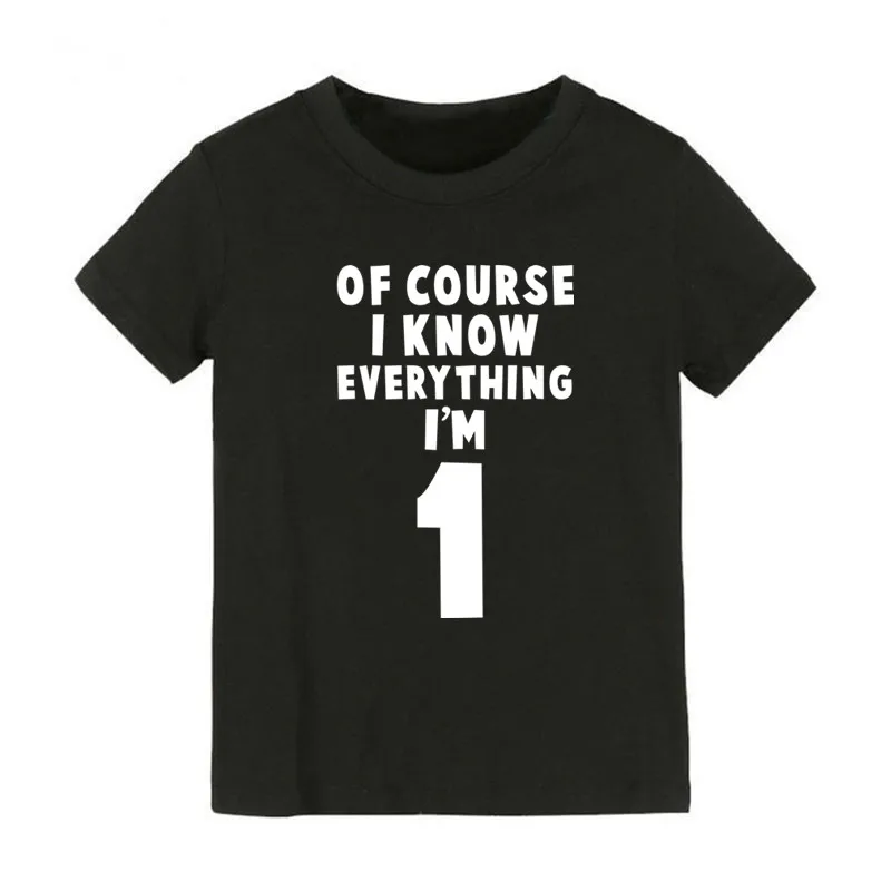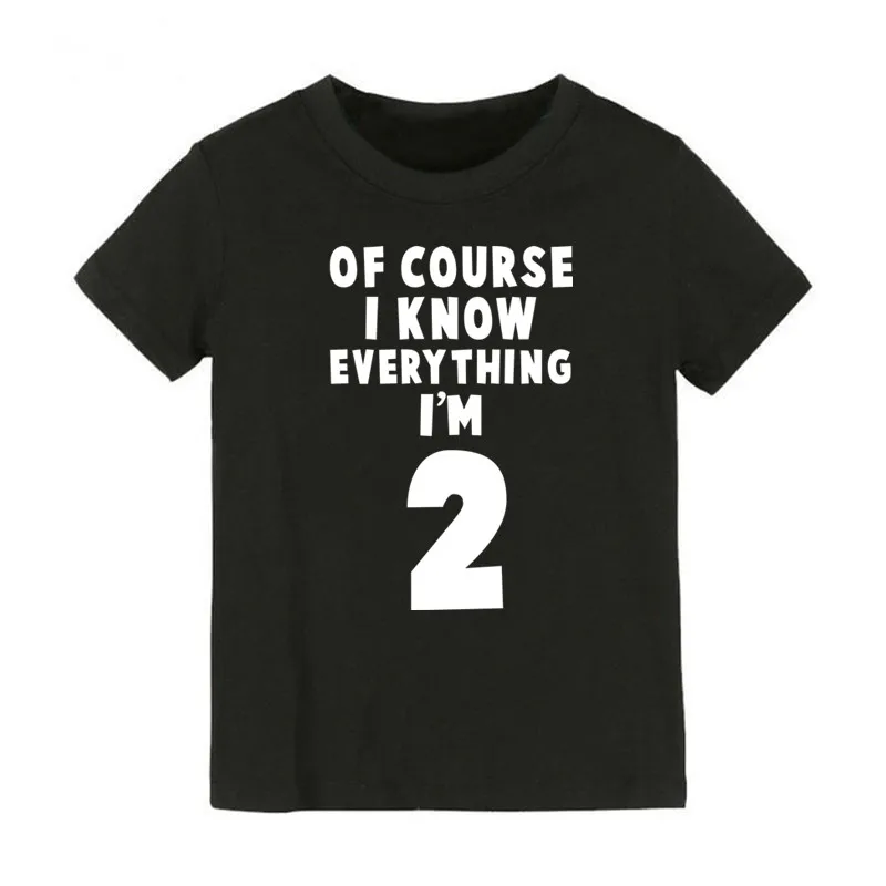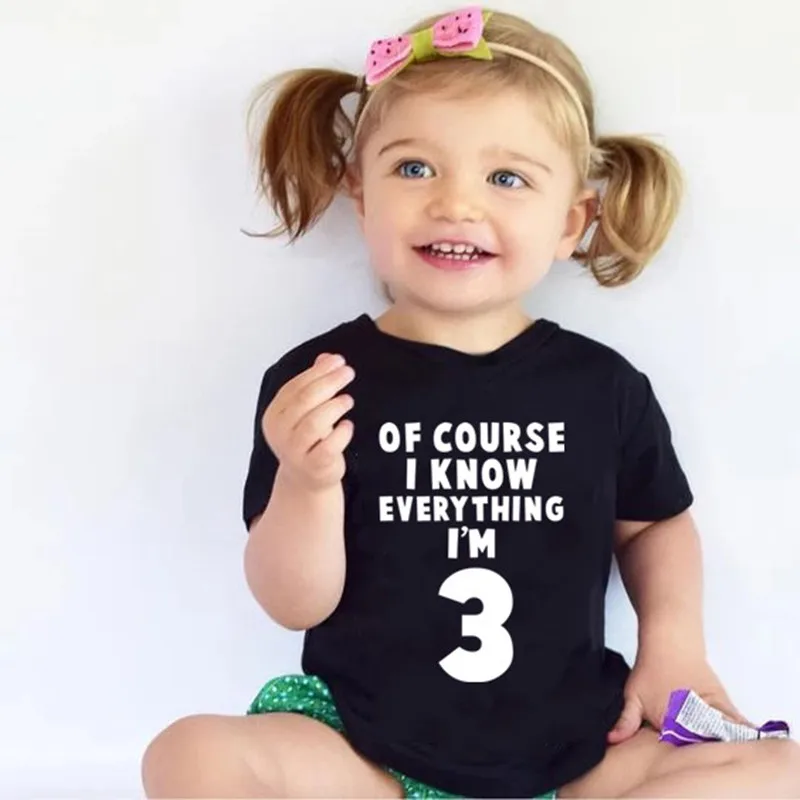 Конечно, я знаю, что все, что я 3 забавные детские футболки, От 1 до 10 лет на день рождения Футболка черного цвета для мальчиков и девочек, футболка с короткими рукавами для девочек детские топы