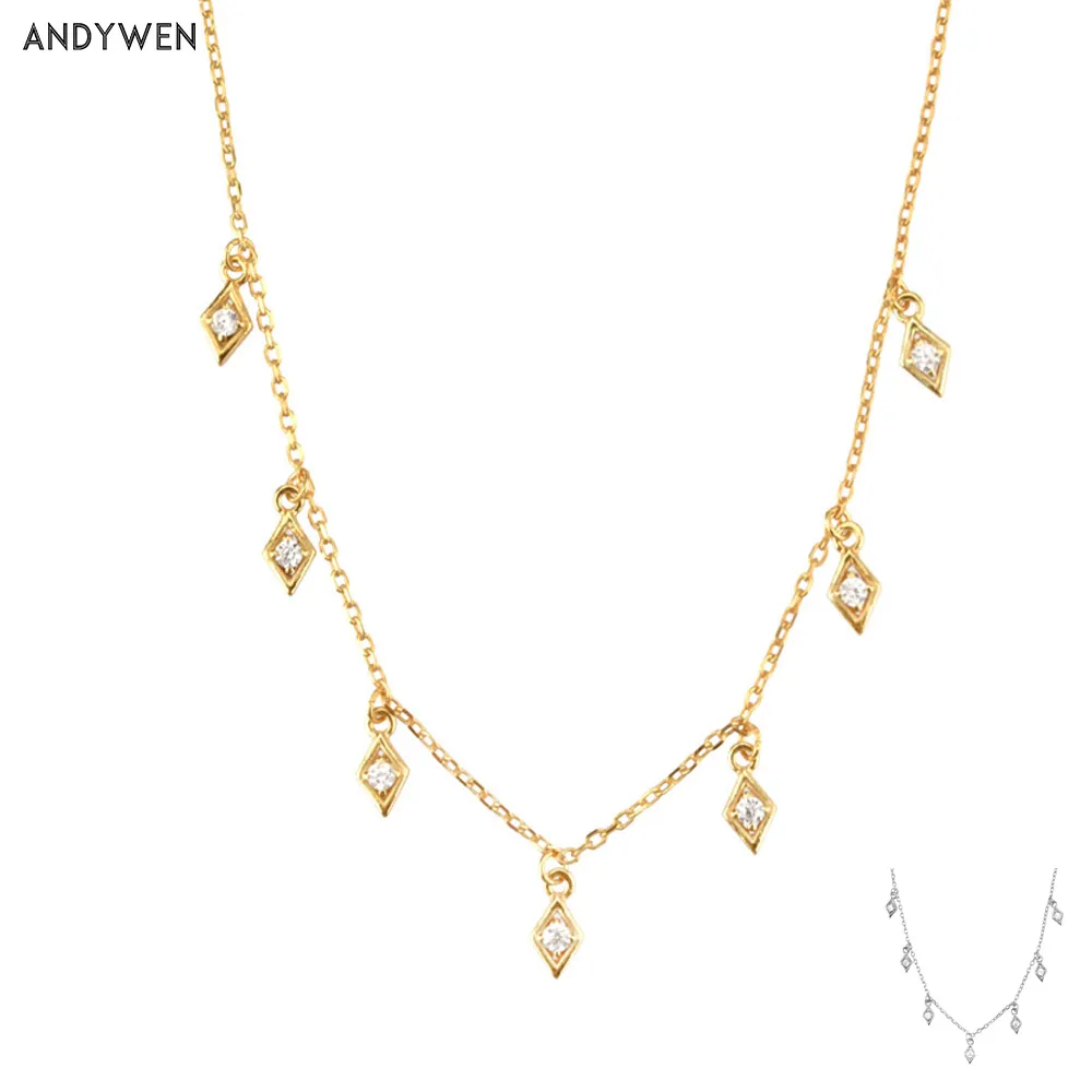Чокер ANDYWEN из стерлингового серебра 925 пробы с квадратным шармом, Длинная подвеска, модные ювелирные украшения 2021, Свадебные украшения с кристаллами для вечерние для женщин