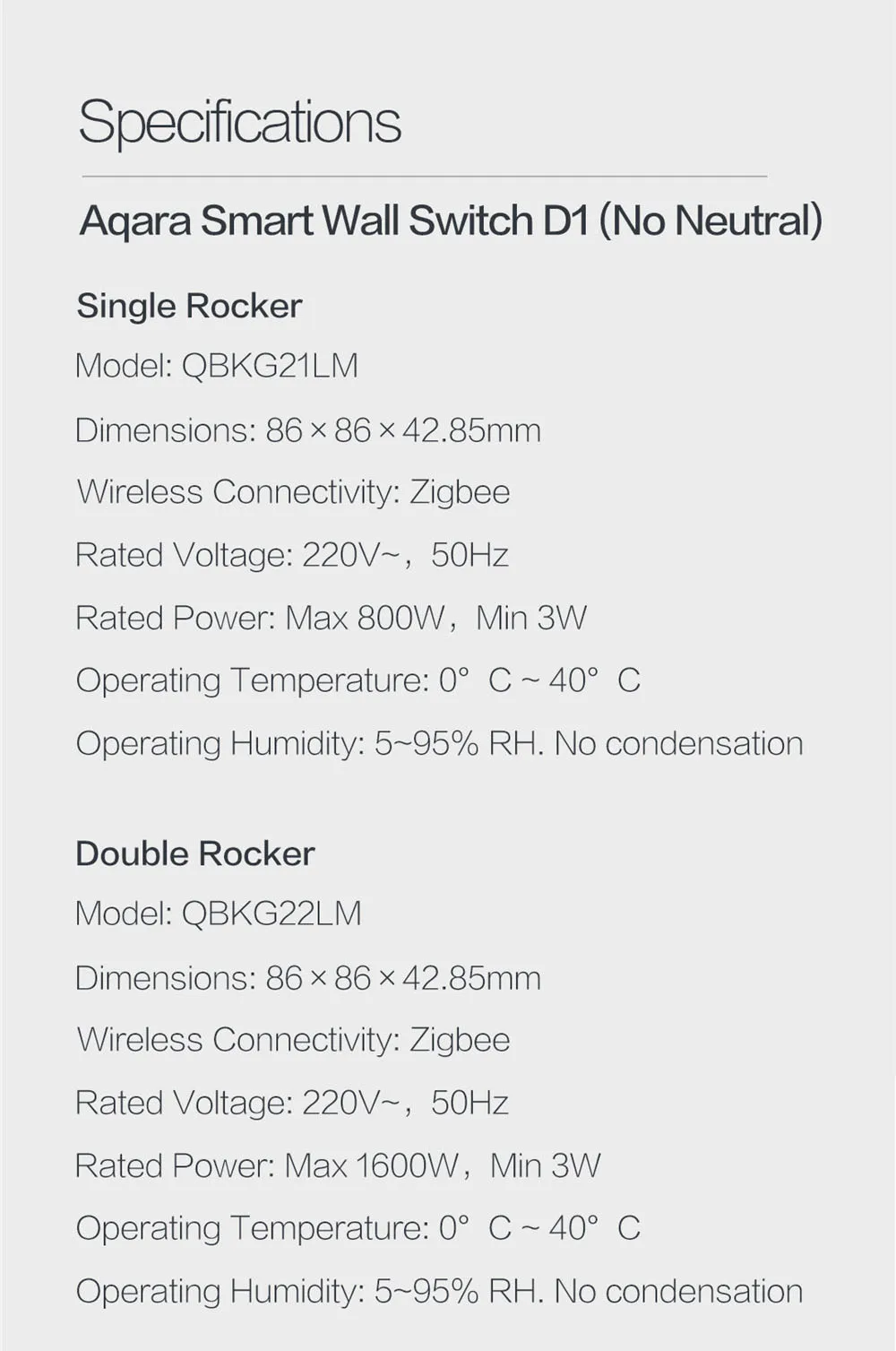 Умный настенный выключатель Aqara D1 Zigbee, Беспроводной Выключатель света для умного дома Mi home key для xiaomi mijia MI Home APP Homekit