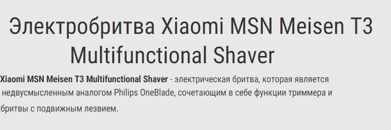 Электробритва Xiaomi MSN Meisen T3 Multifunctional, 5В, 3Вт, сухое и влажное бритье, перезаряжаемый аккумулятор Ni-MH 700 мАч