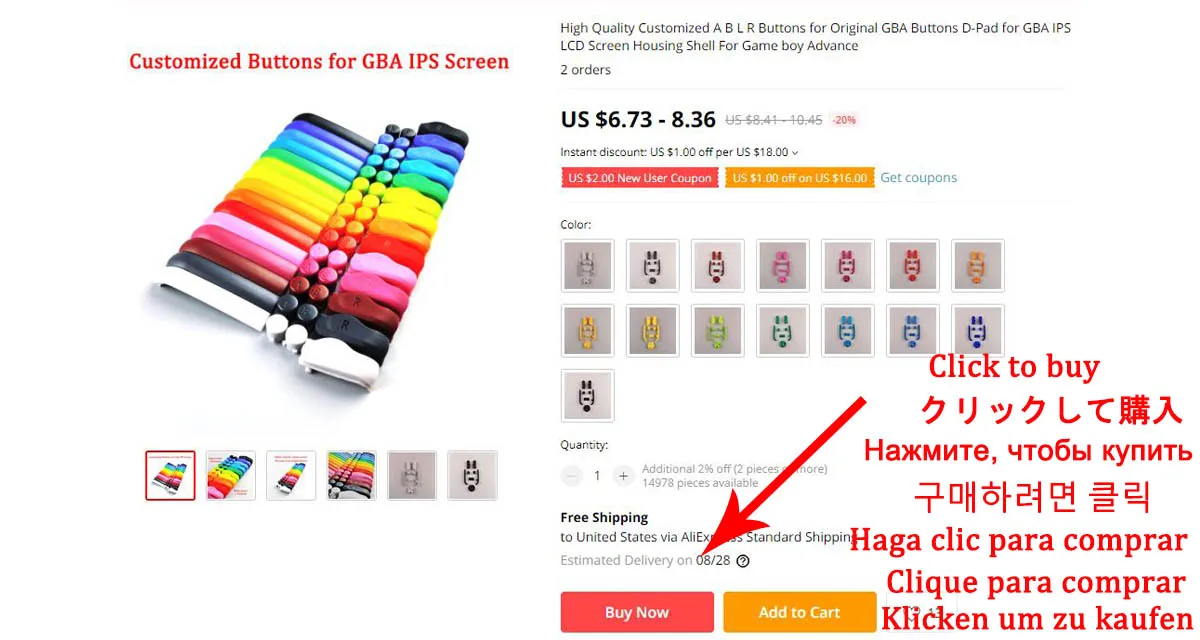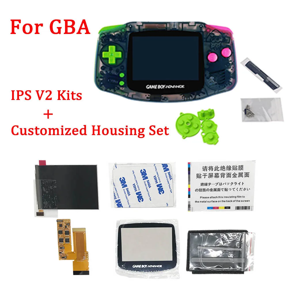Новинка IPS V2 комплекты ЖК-экранов с корпус на заказ комплект оболочек для GBA ,12 цветов предварительно вырезанный Корпус чехол с подсветкой V2 комплекты экранов