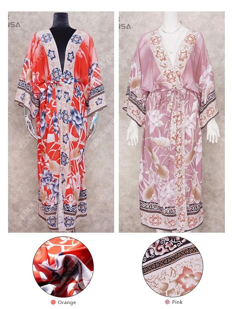 Накидки для бикини из 100% хлопка, розовые накидки с принтом в стиле бохо, искусственное кимоно, платье, Пляжная туника, женский купальный костюм, накидка Q996