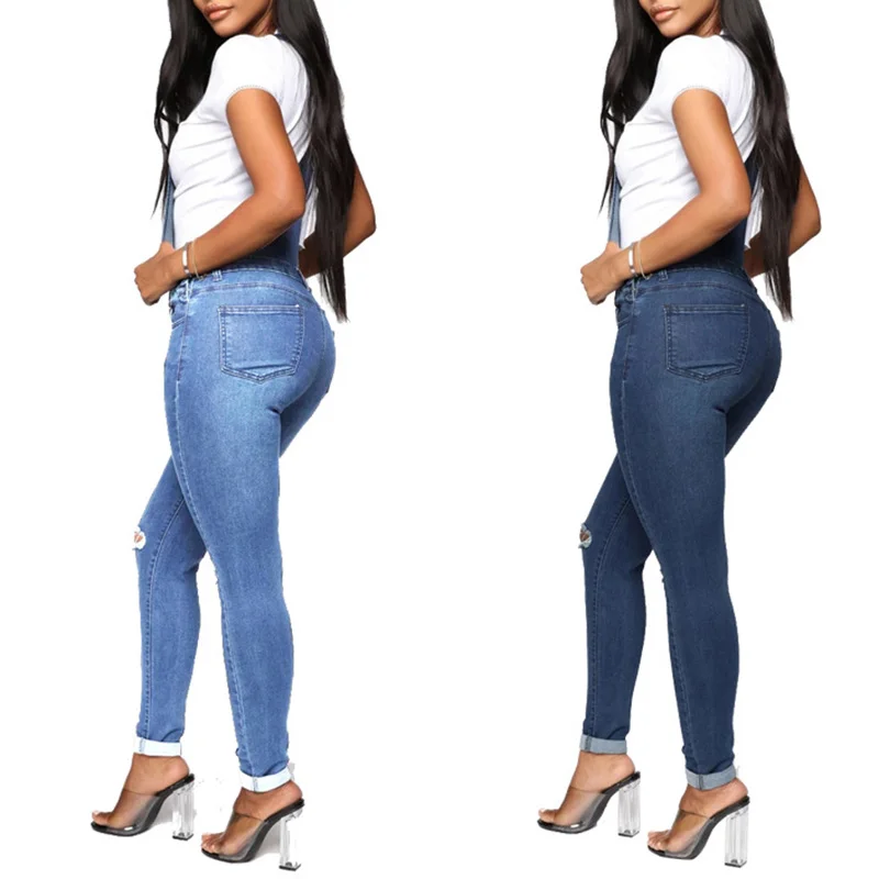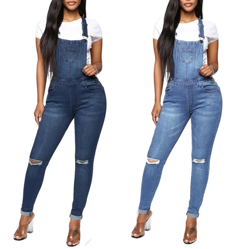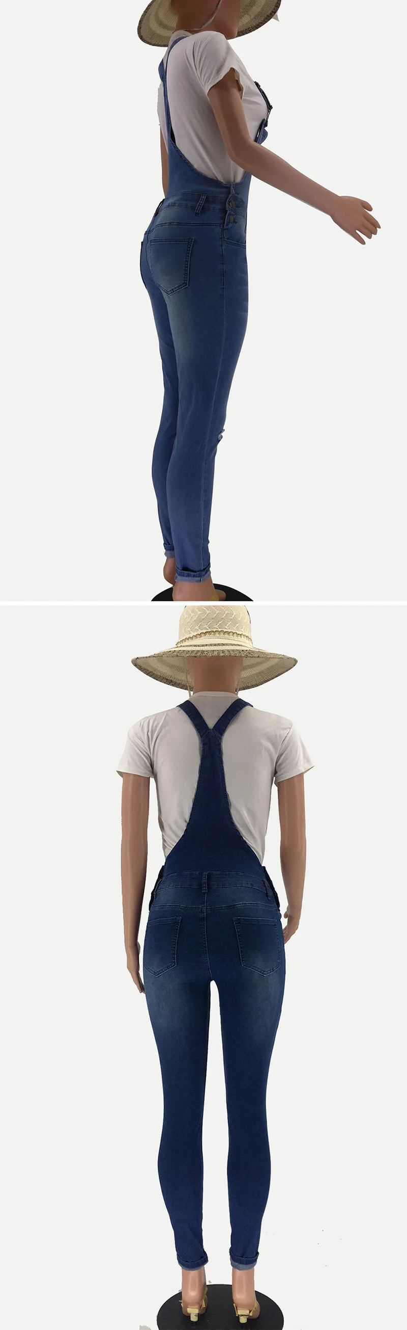 Женский слитный классический джинсовый комбинезон на регулируемых бретелях