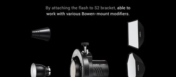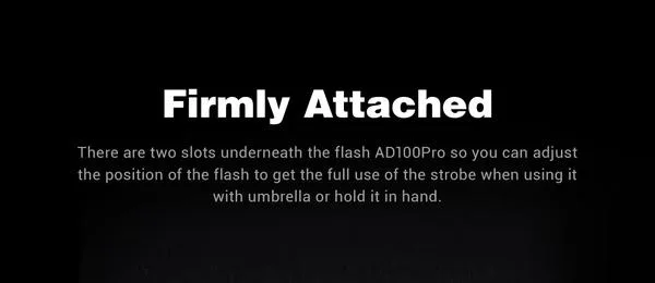 Для еще больших светоформенных возможностей AD100Pro можно использовать с кронштейном S2, что расширяет его совместимость с любым модификатором Bowens-mount. Съемный Монтажный кронштейн с Гнездо для зонтика входит в комплект для использования светильник световыми стойками. Два резьбовых крепления под блоком позволяют регулировать положение светильник монтажном кронштейне для более легкого использования в ручном режиме.