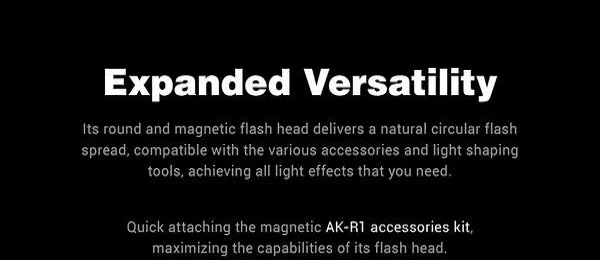 Настоящий ручной стробоскоп, AD100Pro весит чуть больше 1 фунта и составляет всего 4,7 дюйма в длину и 3 дюйма в ширину. В то время как его круглая головка излучает естественный светильник из коробки, Сопряжение его с отдельно доступным набором аксессуаров AK-R1 добавляет еще более творческий контроль через barndoors, диффузионный купол и фильтрацию, защищенную магнитами.