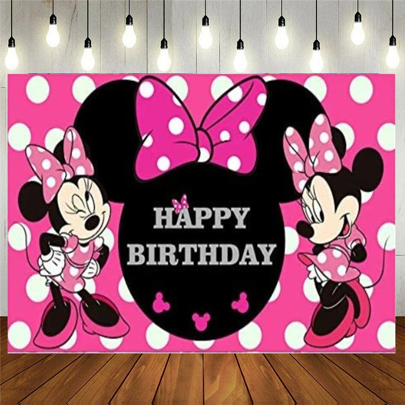 Фон для фотосъемки с розовым бантом и мышкой для девочек на день рождения, декоративные баннеры