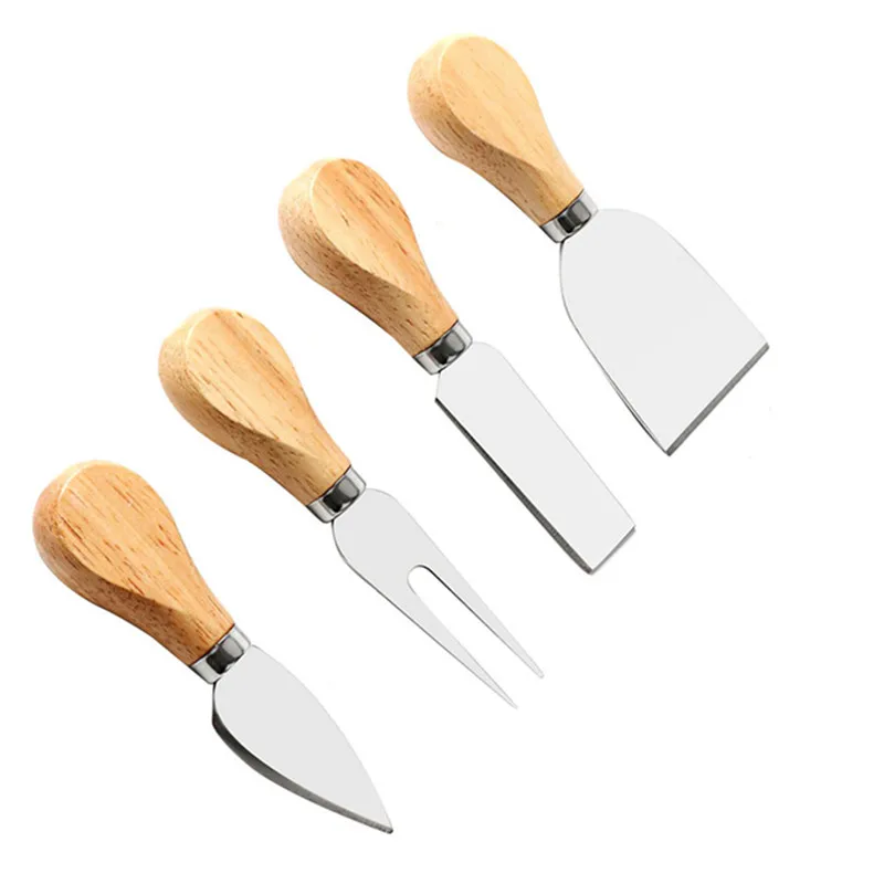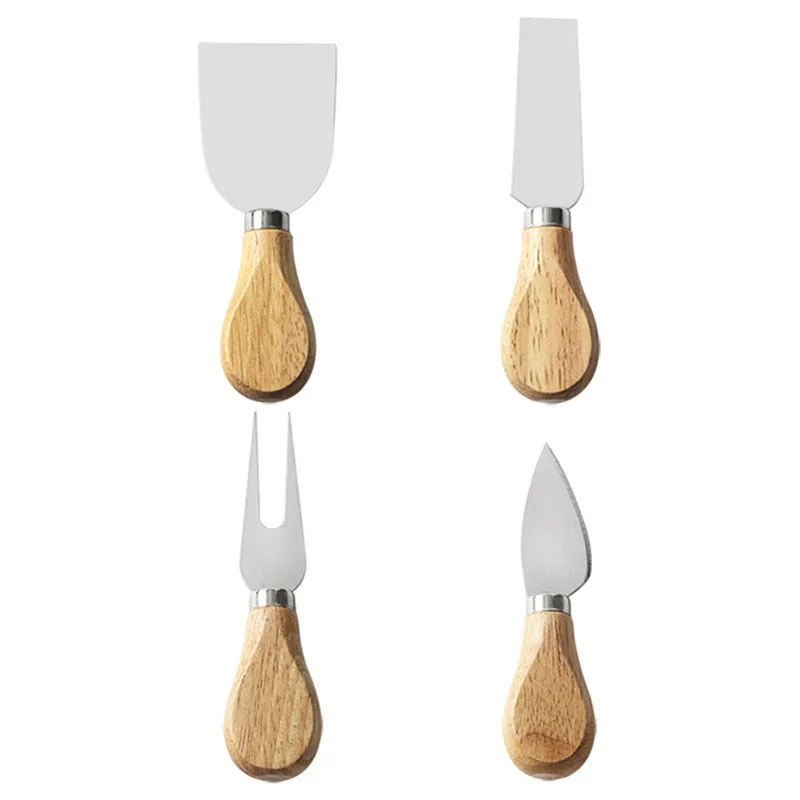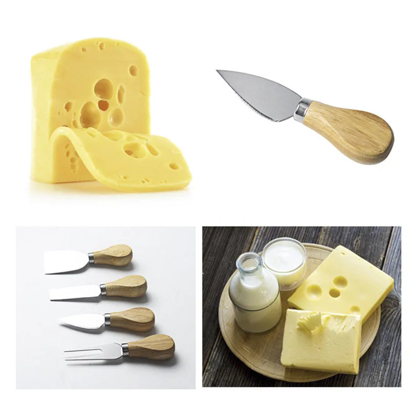 4 шт.компл. дубовые ручки, ножи для сыра, ножи из нержавеющей стали для пиццы, хлеба, крема, выпечки, слайсер, вилка для масла, резак, полезные кухонные инструменты