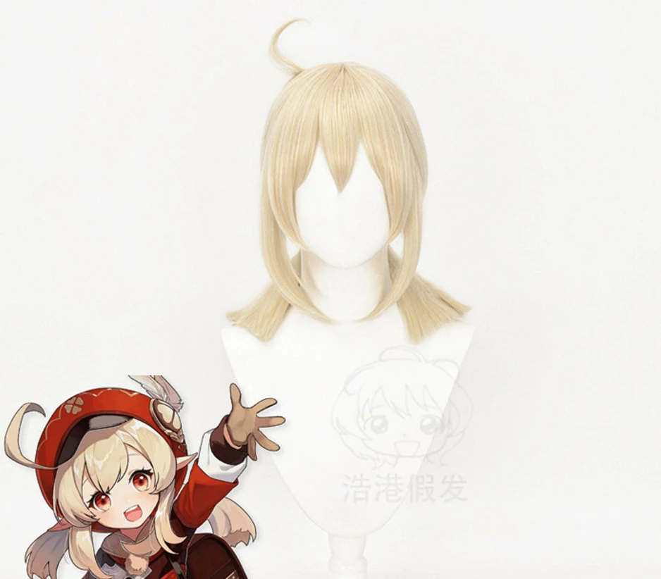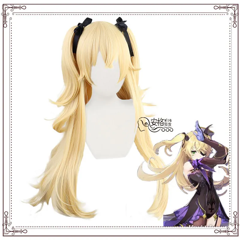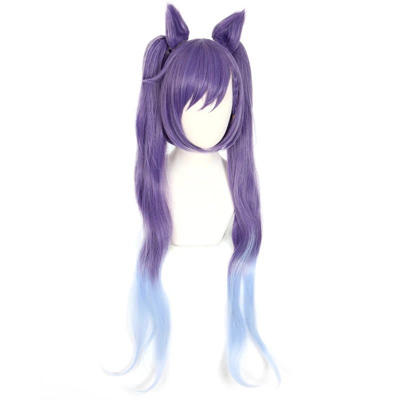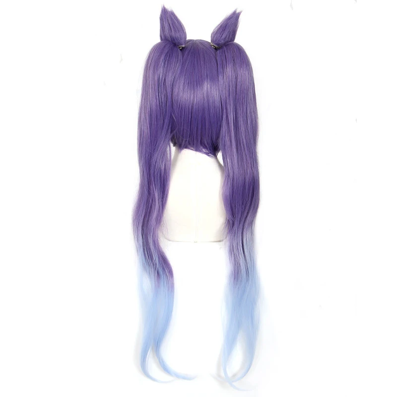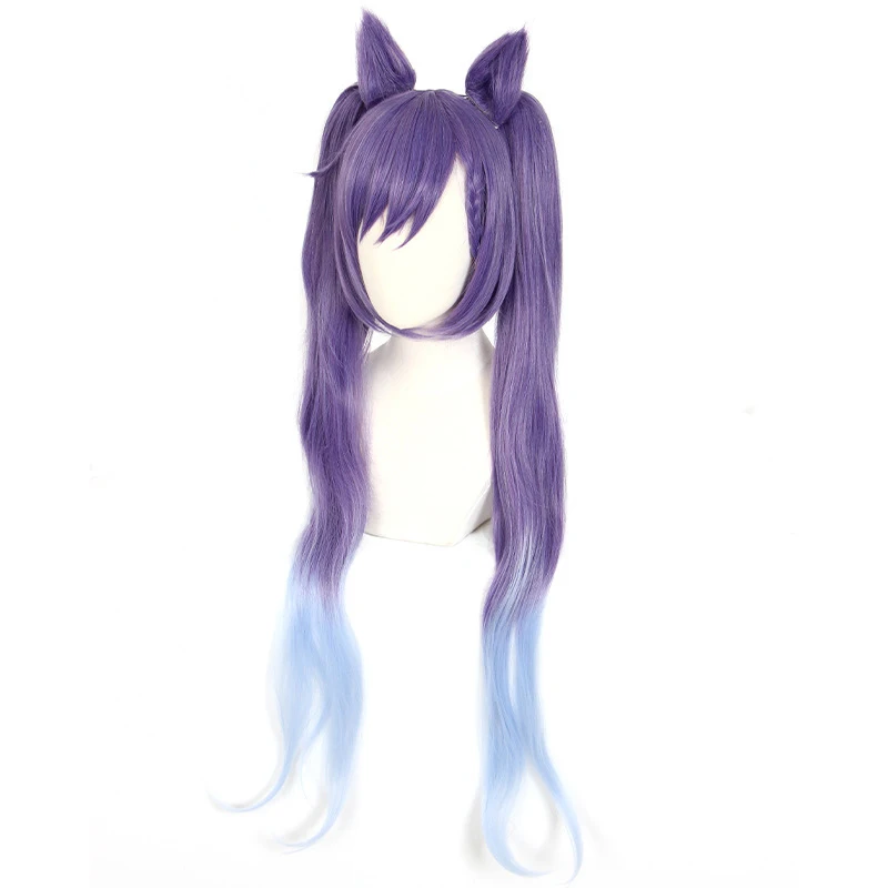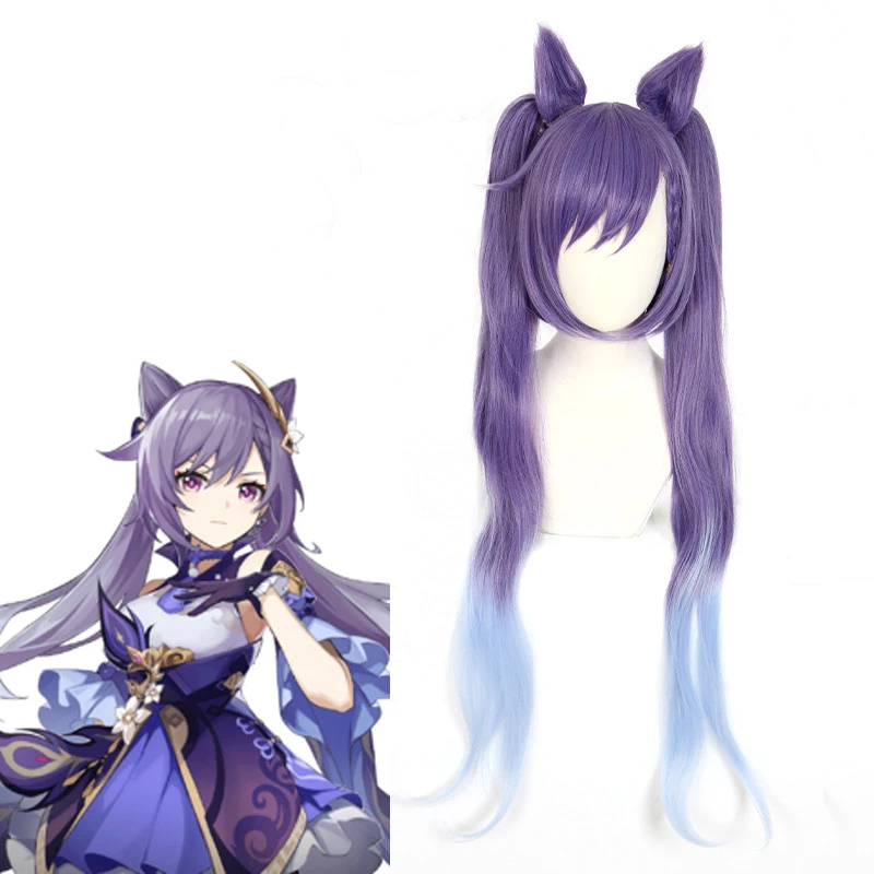 Klee Fischl Keqing парики косички фиолетовый градиент дымчато-синий короткие волосы завитки двойной хвост термостойкие для девочек женщин Косплей