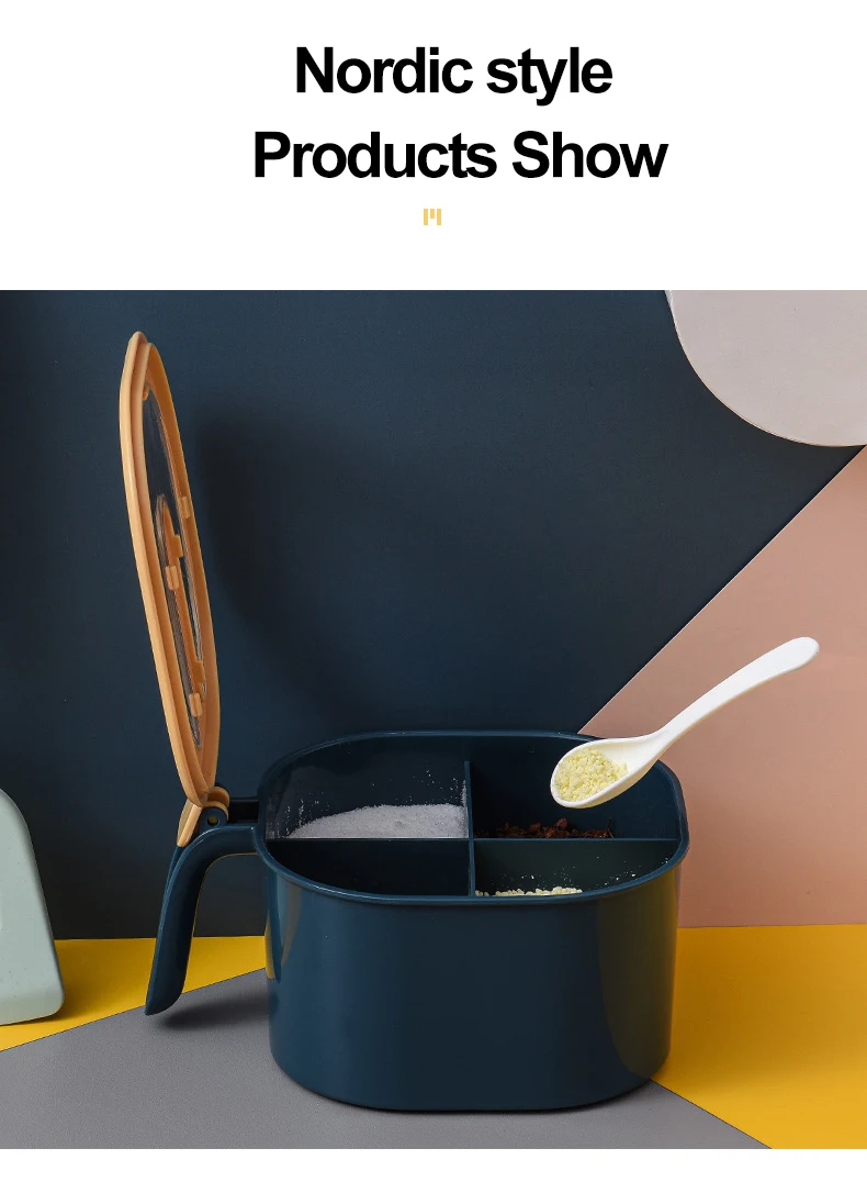 Название: горшок для приправ Стиль: скандинавский стиль Цвет: синий/белый/розовый Размер: 14 см * 8 см Материал: полипропилен материал аксессуары: встроенная ложка Назначение: для хранения различных приправ