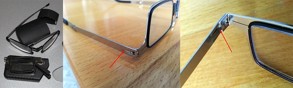 10 октября заказ, 26 октября уже получил. Очки прикольные и неоднозначные. Сделаны из штампованного металла, покрытого никелем. Шарниров, как таковых нет - всё завязано на подпружиненную выштамповку (указана стрелками на фото). Долговечность данной конструкции вызывает сомнения. Зато очень лёгкие, практически невесомые. Спорны еще и опоры для переносицы - очень узкие и поначалу немного дискомфортно. Но быстро привыкаешь. Линзы понравились - очень прозрачные и с просветлением. Брал +1 для улицы и просмотра телевизора.
