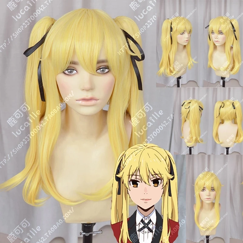 Высокое качество Kakegurui Mary Saotome Meari блонд конские хвосты термостойкие волосы Косплей Аниме парик + черная шелковая лента + парик шапка