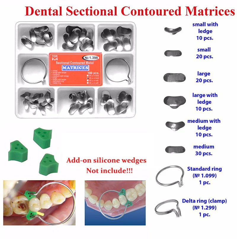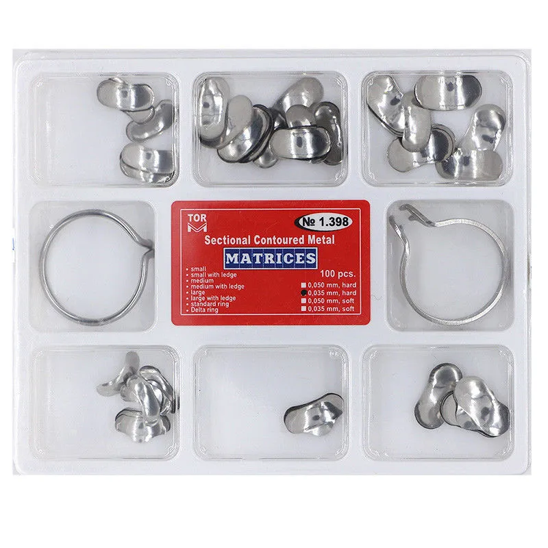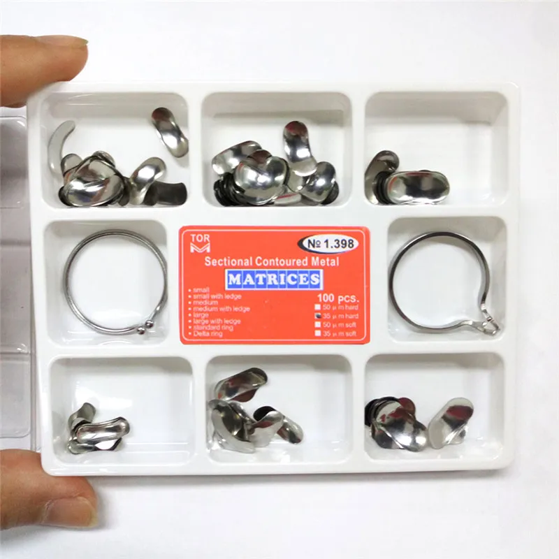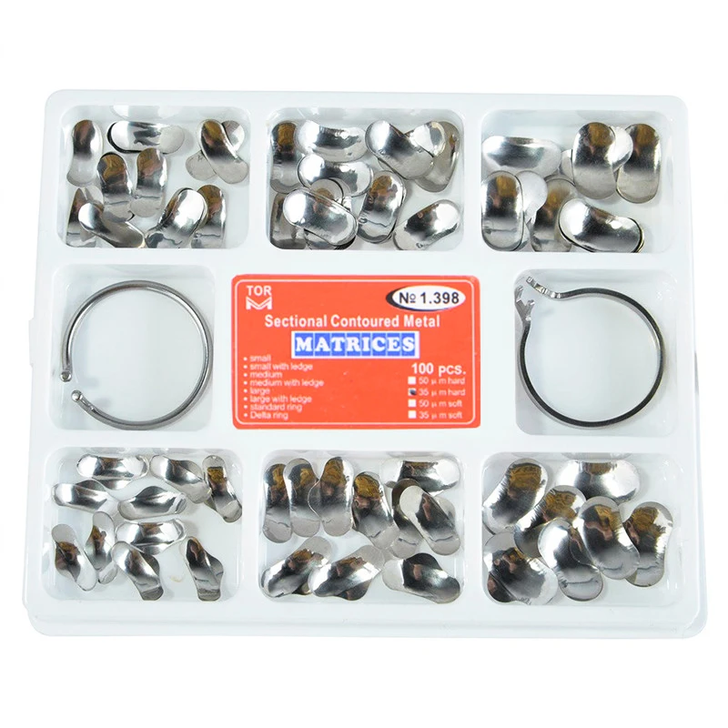 100 шт.кор. стоматологические матрицы No.1.398 секционная контурная металлическая матрица с 2 кольцами в комплекте для замены зубов стоматологические инструменты
