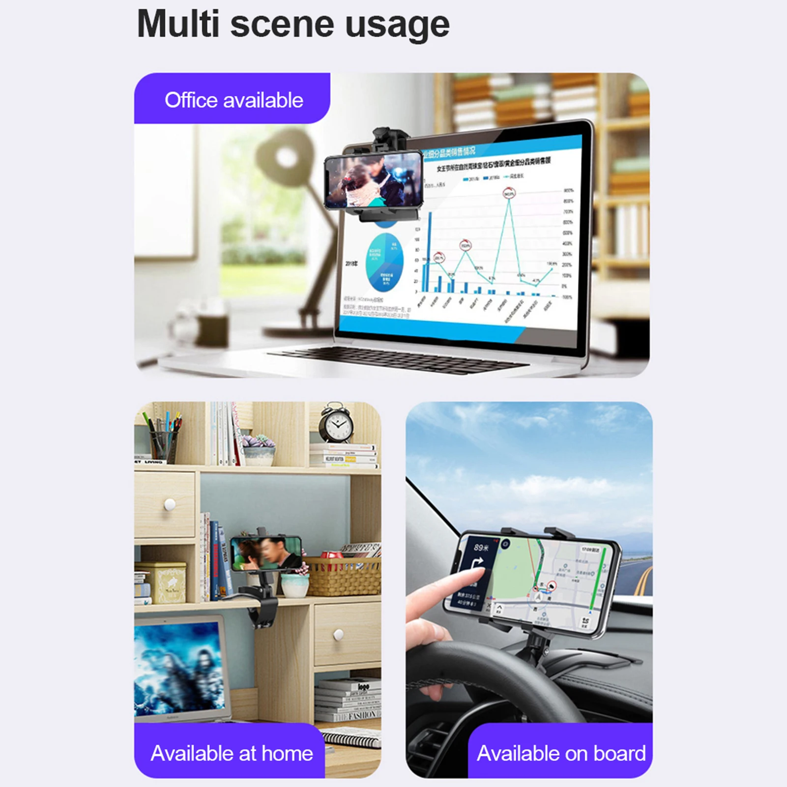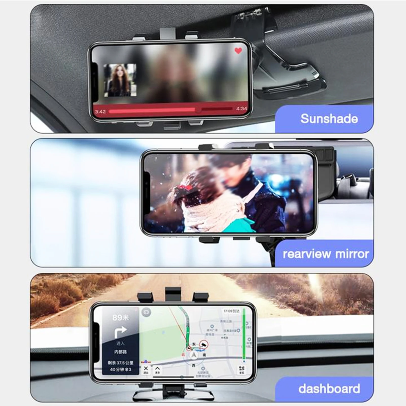 Вращающийся на 1200 градусов Автомобильный держатель телефона на приборную панель с поворотом на 360 и скрытым автомобильным кронштейном для парковочных номеров и карт
