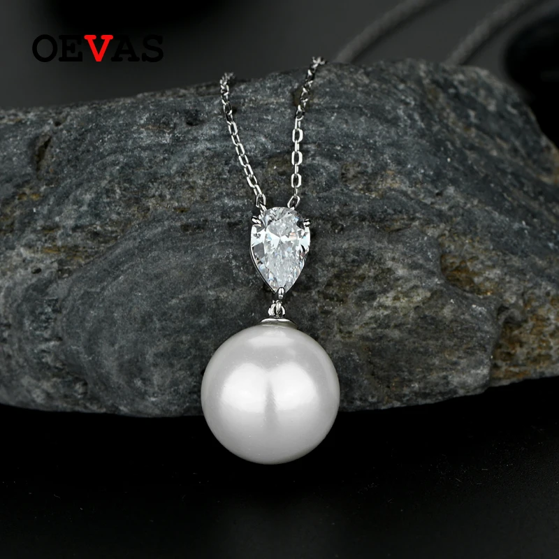OEVAS 100% 925 стерлингового серебра жемчужное ожерелье с подвеской для женщин сверкающие капли воды с высоким содержанием углерода со стразами свадебные ювелирные украшения