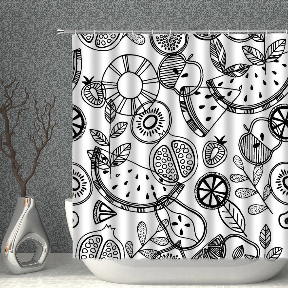 Мультяшная белая занавеска для душа, водонепроницаемая черная занавеска с принтом для ванной, набор из полиэфирной ткани, ванная комната, экран, разные размеры, декор для ванной