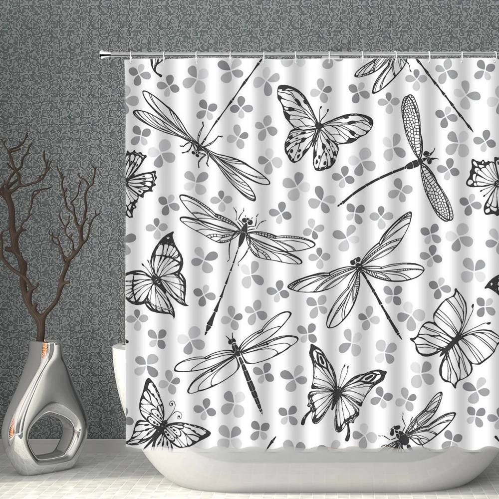 Классическая черно-белая занавеска для душа, водонепроницаемая ткань с принтом, экран для ванной комнаты, декор для ванной разных размеров