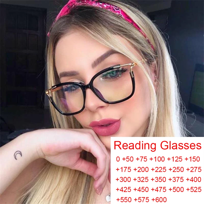 Очки для чтения женские, люксовые брендовые прозрачные квадратные очки кошачий глаз с фильтром по рецепту, с сисветильник оправой