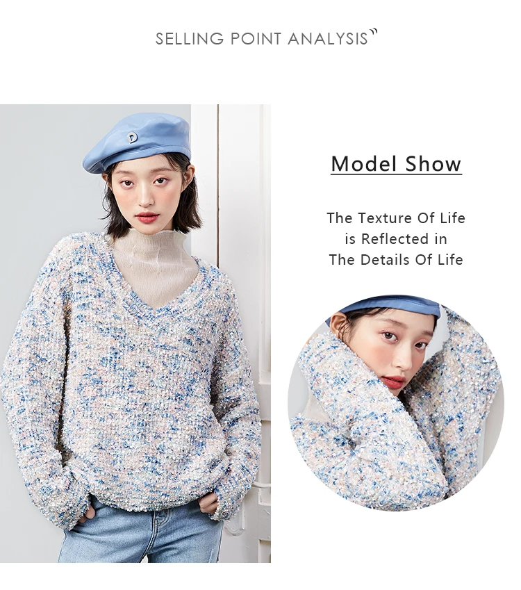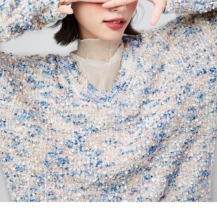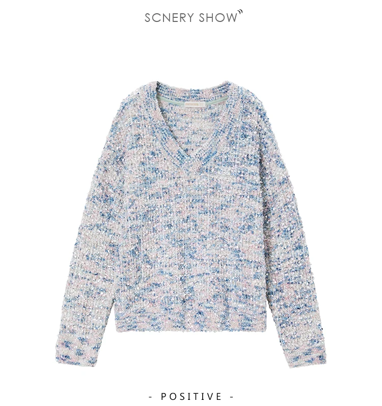 SEMIR свитер с цветочным принтом, женское платье с v-образным воротом, свитер вязаный свитер на весну и 2021 НОВЫЙ свободный свитер для жителя пригорода ins тренд чистый красный ветер