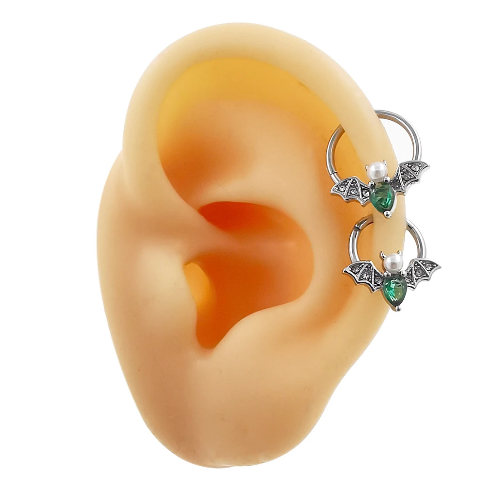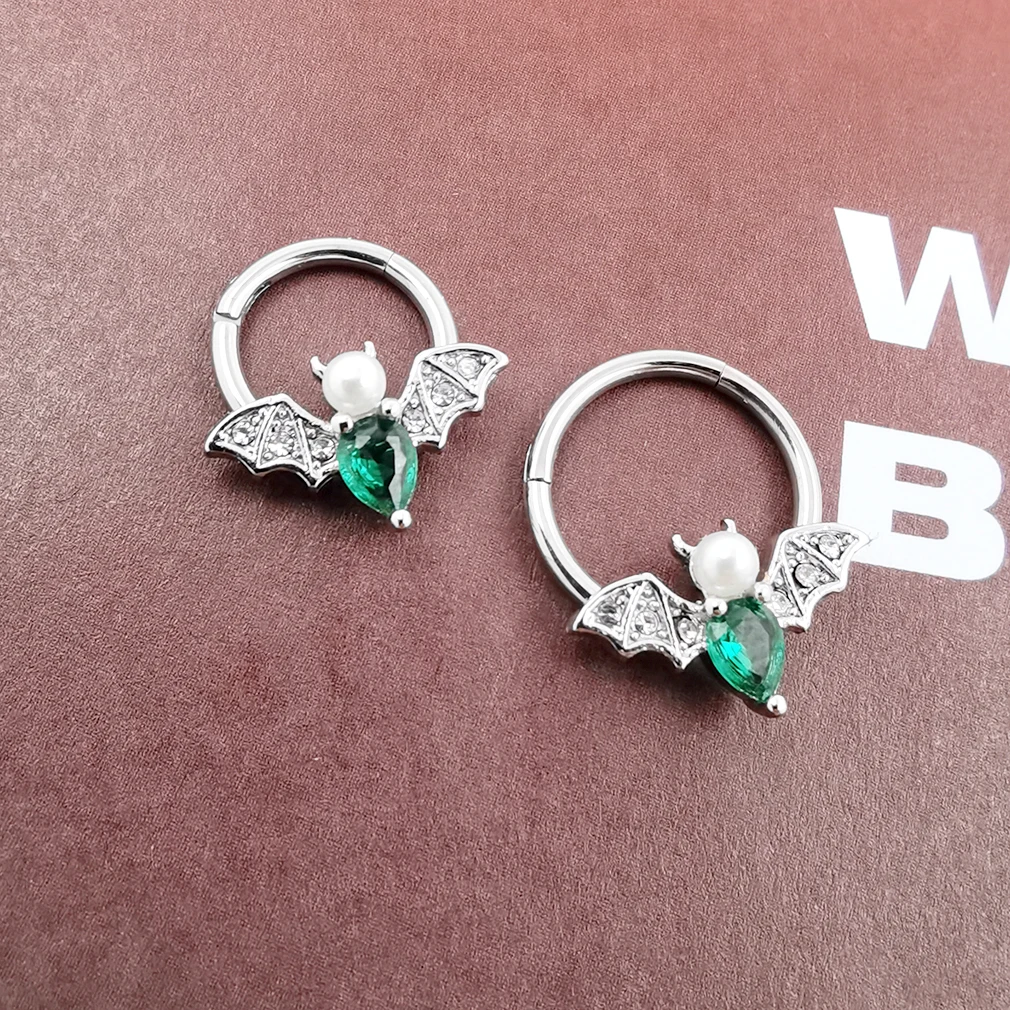 JHJT 16 г 8 мм 10 мм летучая мышь распашные сегментные кольца для носа для пирсинга, из хирургической стали CZ серьги для хряща перегородки Cliker золотые украшения для носа