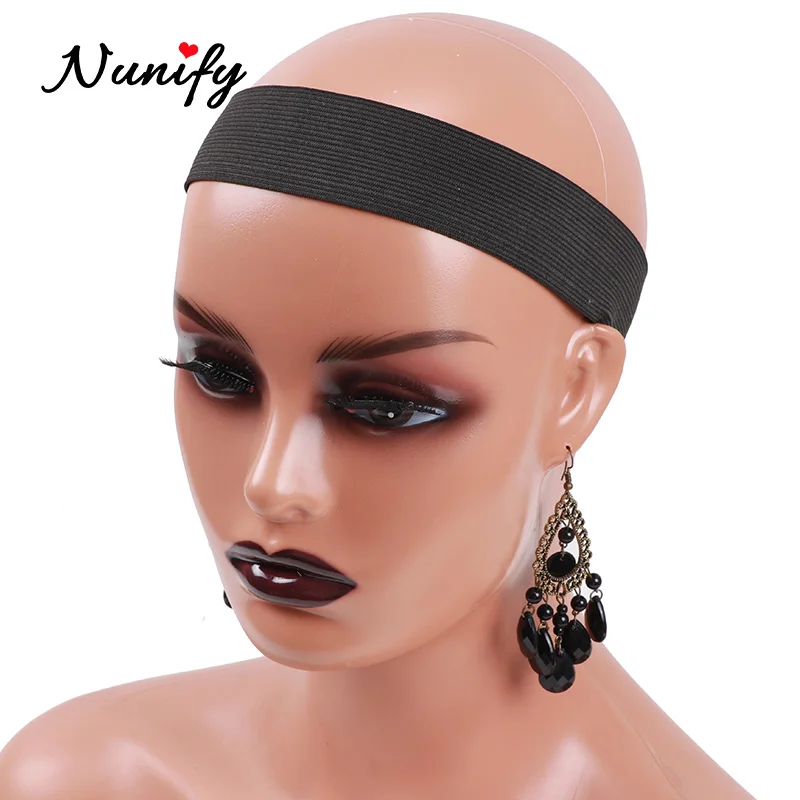 Оптовая продажа 100 шт Nunify Регулируемый парик эластичная лента с волшебной наклейкой индивидуальный логотип для вашего бренда края волос обруч повязка на голову черный