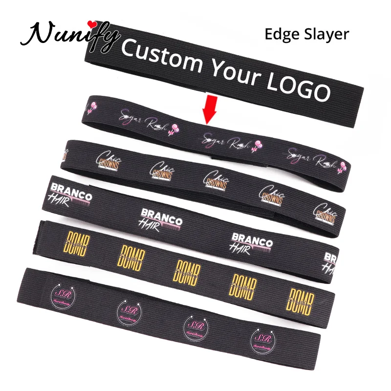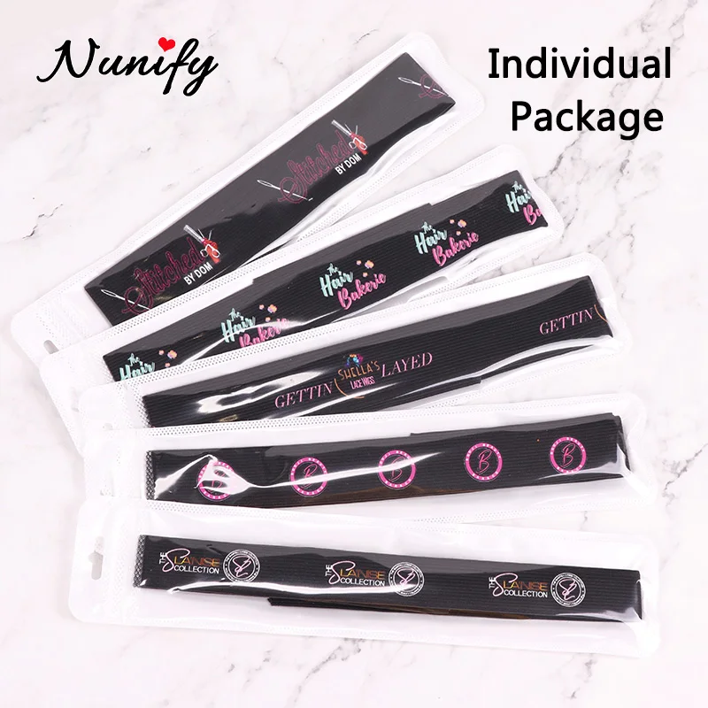 Оптовая продажа 100 шт. Nunify Регулируемый парик эластичная лента с волшебной наклейкой Пользовательский логотип для вашего бренда края ободок для волос черный